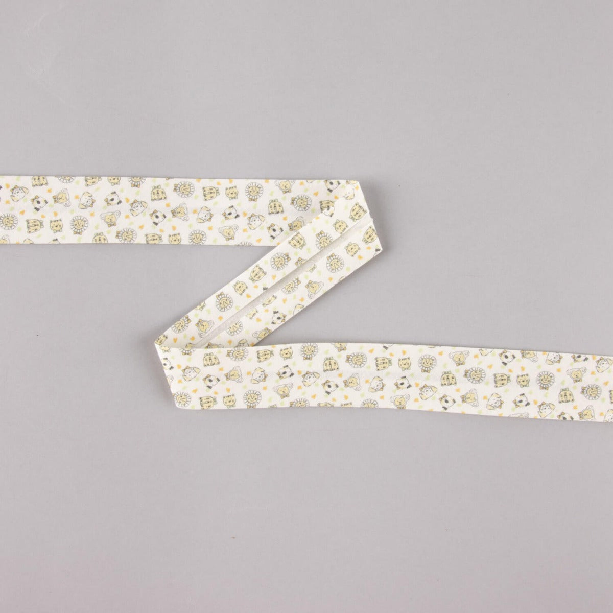 Ajoutez de la gaieté et de la douceur à vos créations avec ce biais de 18 mm en 100 % coton biologique, orné d'un imprimé amusant représentant des têtes d'animaux et des pois orange et verts sur fond blanc. Idéal pour les projets de couture pour enfants avec une touche colorée et joyeuse. Fabriqué en coton biologique, il est doux et sans danger pour les peaux délicates, comme celles des bébés et des tout-petits. La coupe en biais facilite l'application sur les formes courbes, idéal pour les bordures décoratives et les finitions.