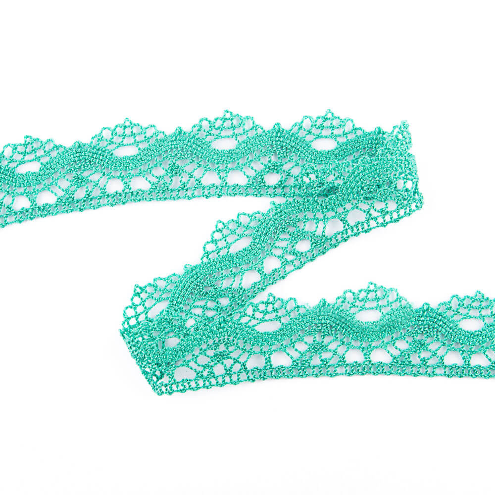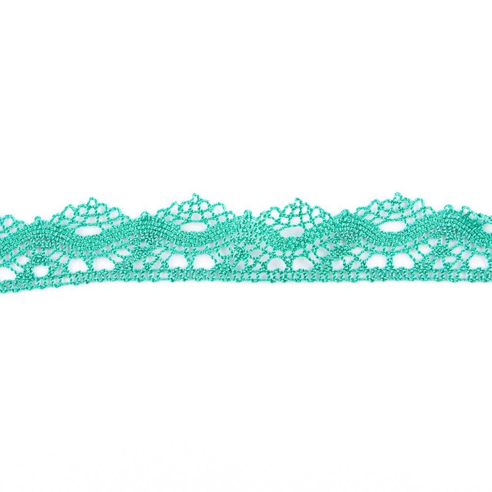 Ruban broderie vert pomme. Ruban brodé en forme de vagues, de 3 cm de large à son point le plus large et de 2,3 cm à son point le plus étroit. Achetez à partir d'un mètre. Promotion jusqu'à épuisement des stocks.