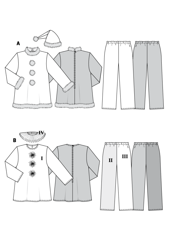 Crea tu propio disfraz de Papá Noel o de Arlequín con este patrón de Burda.