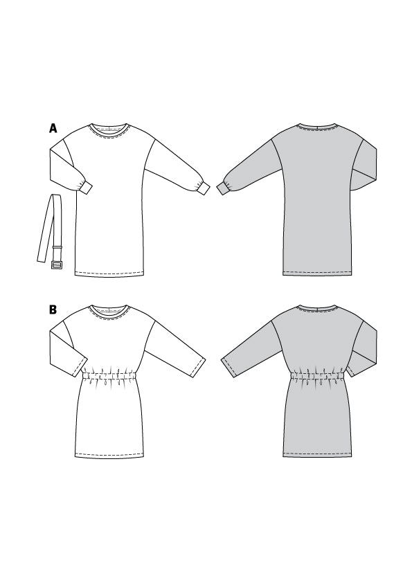 Avec ce patron de couture vous pouvez facilement créer deux robes. Niveau de difficulté: très facile. Consommation de tissu: voir image. Instructions illustrées en anglais, français, allemand, espagnol, néerlandais, italien, suédois, danois et russe.