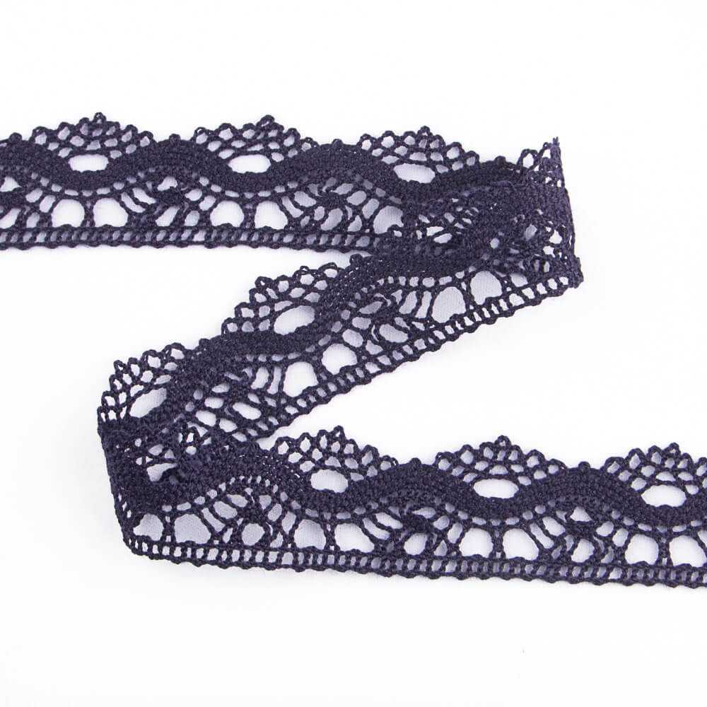Ruban brodé violette. Ruban brodé en forme de vagues, de 3 cm de large à son point le plus large et de 2,3 cm à son point le plus étroit, toutes de la même couleur. Achetez à partir d'1 mètre. Promotion jusqu'à épuisement des stocks.