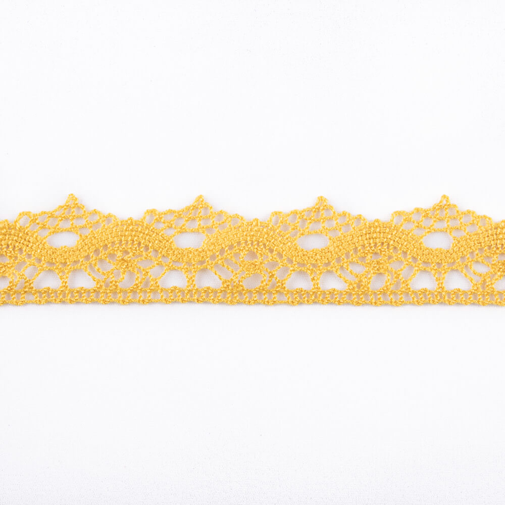 Ruban broderie ocre. Ruban brodé en forme de vagues, de 3 cm de large à son point le plus large et de 2,3 cm à son point le plus étroit. Achetez à partir d'un mètre. Promotion jusqu'à épuisement des stocks.