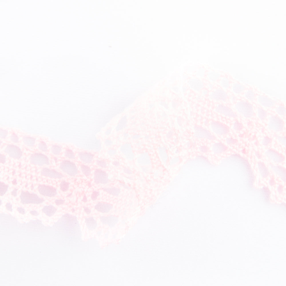Tira de puntilla de poliéster en color Rosa intenso. Tira de puntilla calada en forma de ondas de 2 cm de ancho toda del mismo color. Compra a partir de 1 metro, compra los metros de puntilla que necesites. Precio en oferta hasta agotar existencias.