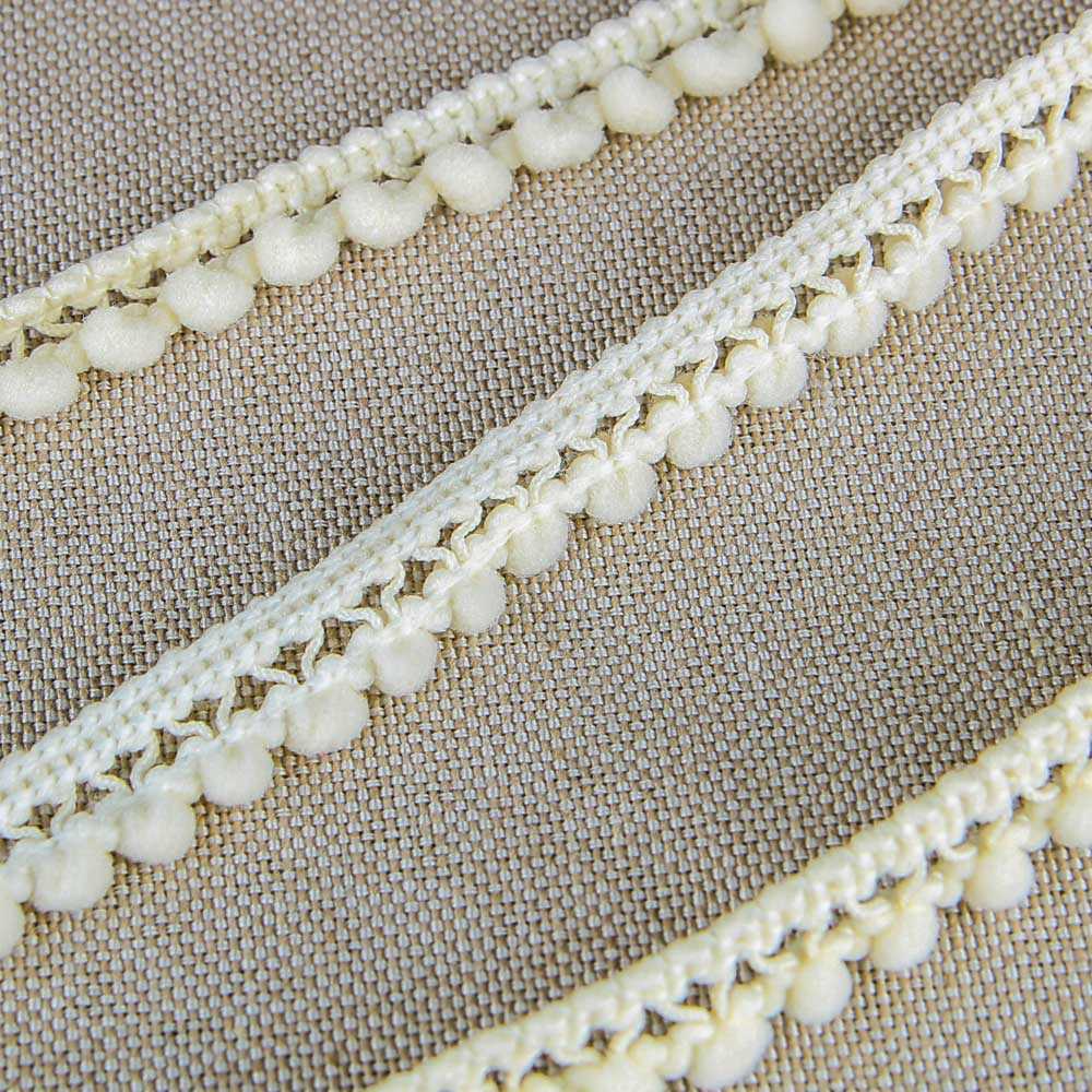 Pompons Mousse Mini écru. Acheter votre mercerie en ligne et vos rubans de pompons au mètre . Petits pompons en mousse de 10 millimètres . Ruban pour ornements et décorations, et couture flamenco.