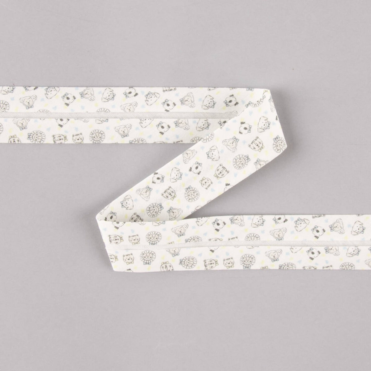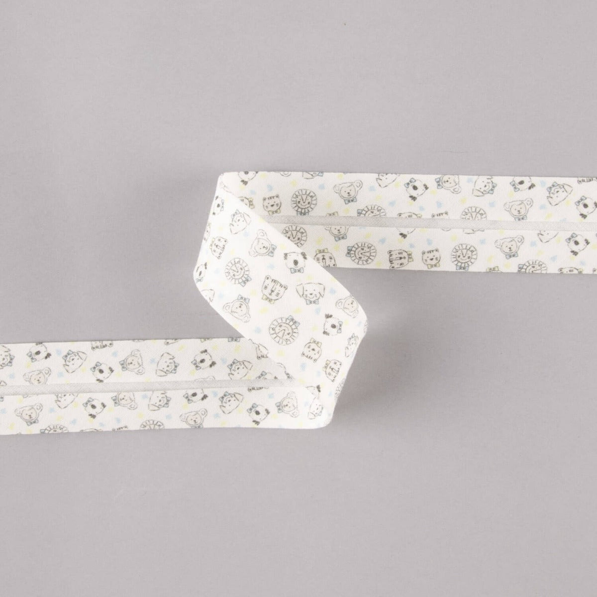 Biais en coton biologique Zoo bleu-vert 30 mm