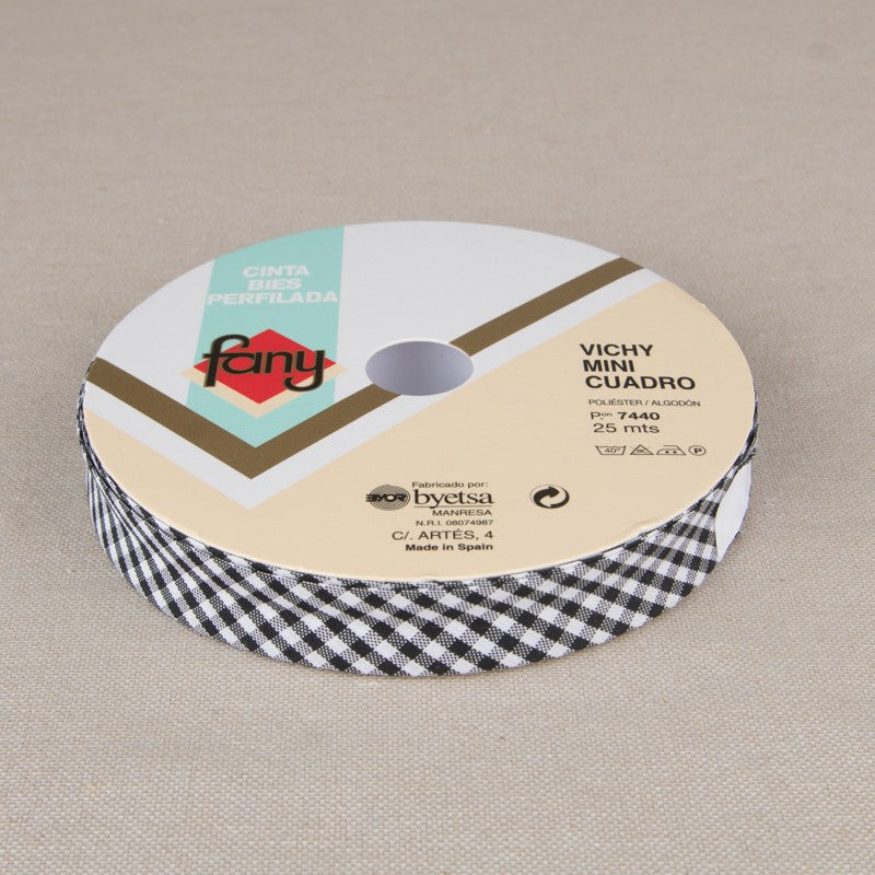Ruban Biais Vichy Noir 18mm - Ribes y Casals
