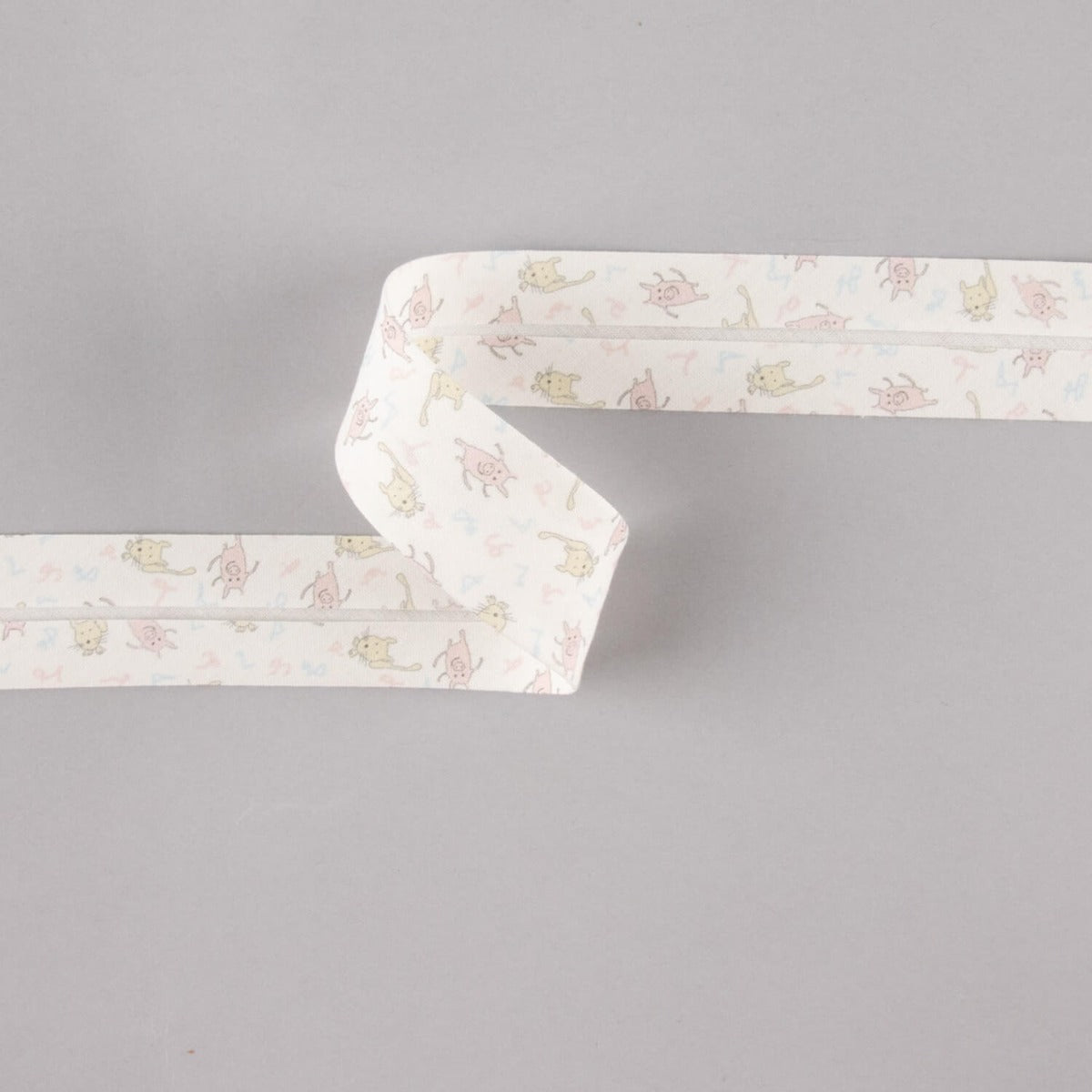 Biais en coton biologique Piglets & Kittens rose-crème 30 mm
