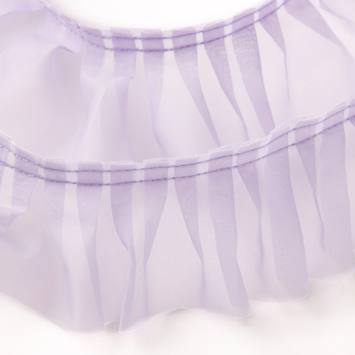 La cinta plisada garrucha en color malva es el complemento perfecto para añadir un toque elegante y delicado a cualquier confección.