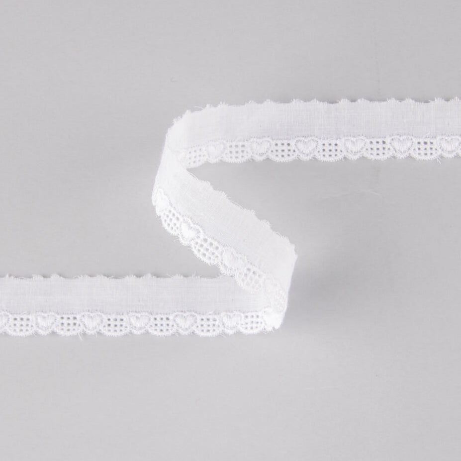 Bande de baptiste brodée 100% coton. Largeur: 2,5 cm Couleur: Blanc