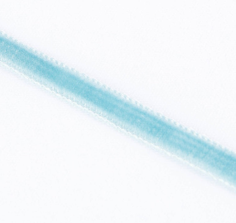 Ruban en velours bleu glace 16mm de large. Ruban de qualité, doux et élégant, idéal pour combiner dans vos créations avec des tissus et d'autres rubans. Parfait pour la fabrication, l'artisanat et la décoration. Vendu à partir d'un mètre. Achetez le ruban dont vous avez besoin.