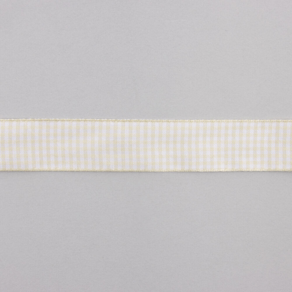 Ruban Vichy en beige et blanc disponible en 15 ou 24 mm de large. Ruban en polyester de haute qualité idéal pour ajouter des détails à vos projets de couture, nœuds pour mode enfant... Achetez les mètres dont vous avez besoin, prix au mètre.