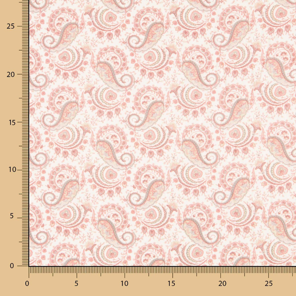 Tissu sergé imprimé cachemire crème. Tissu de coton stretch idéal pour confectionner des robes, chemises, jupes et vêtements frais et confortables pour la saison printemps-été.