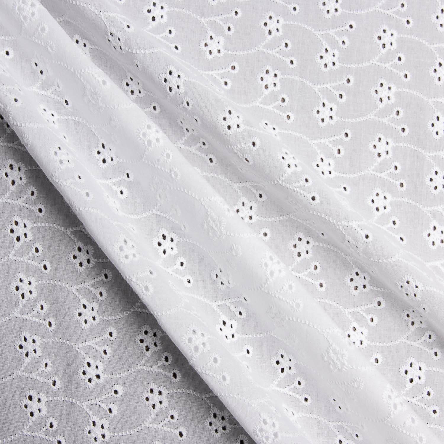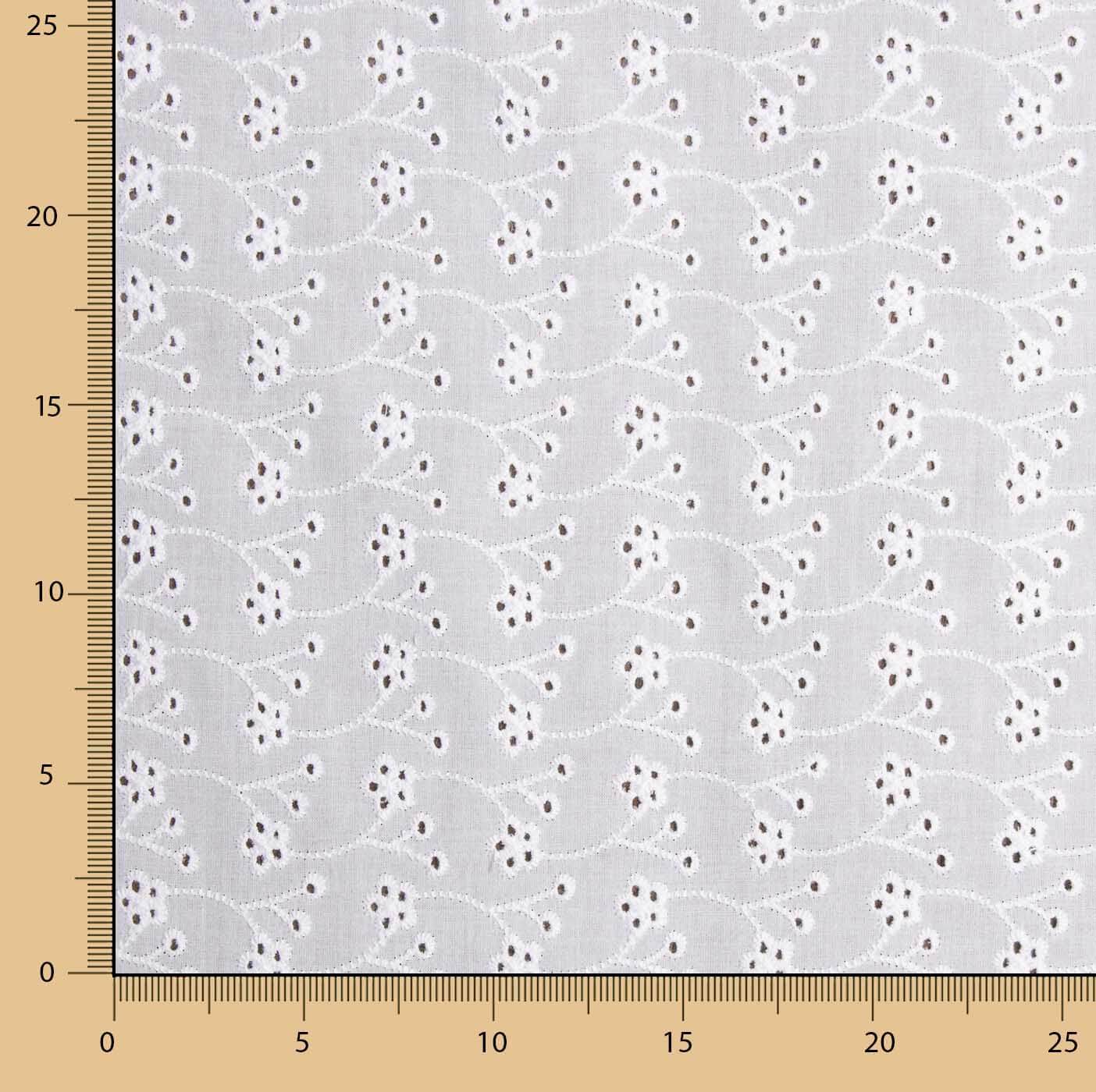 Tissu avec broderie suisse perforée trèfle blanc naturel. Tissu 100 % coton type voile de couleur blanche, doux, légèrement soutenu. Broderie ajourée flamenco en coton fin, au toucher naturel et avec un relief créé par la broderie elle-même. Tissu brodé de grande qualité, qui alterne un ajouré très subtil et gracieux, apportant un jeu de transparences frais et jeune. Tissu idéal pour la confection de costumes de danse sévillane, d'applications et de volants de flamenco. Vous pouvez utiliser ce type de broderie suisse en voile pour vos créations les plus fraîches, en leur apportant une touche romantique et décontractée : robes ibicencas, chemisiers, tops, jupes... ainsi que pour les accessoires et les ornements.