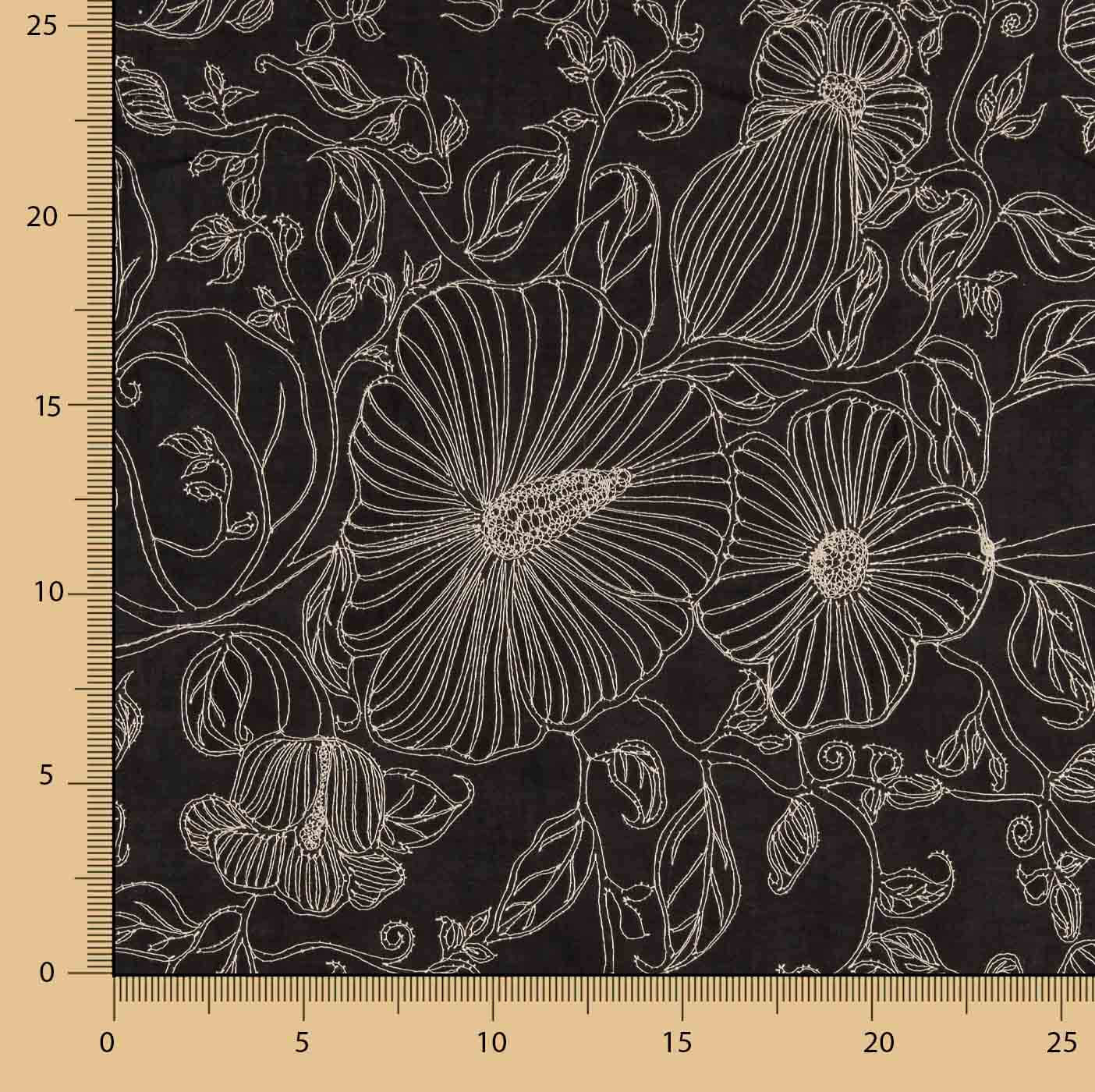 Ce tissu fin et lisse de type voile de couleur noire se distingue par son élégance et sa délicatesse, associées à une broderie florale de couleur écru qui apporte contraste, sophistication et une finition artisanale de haute qualité. Fabriqué en 100 % coton, c'est un tissu léger, respirant et doux au toucher, idéal pour des vêtements frais et confortables. Avec une largeur de 140 cm, il est parfait pour la confection de chemisiers, chemises, robes vaporeuses, tuniques, vêtements romantiques et projets de mode féminine, ainsi que pour les détails décoratifs délicats. Un voile brodé qui allie légèreté, élégance et polyvalence.