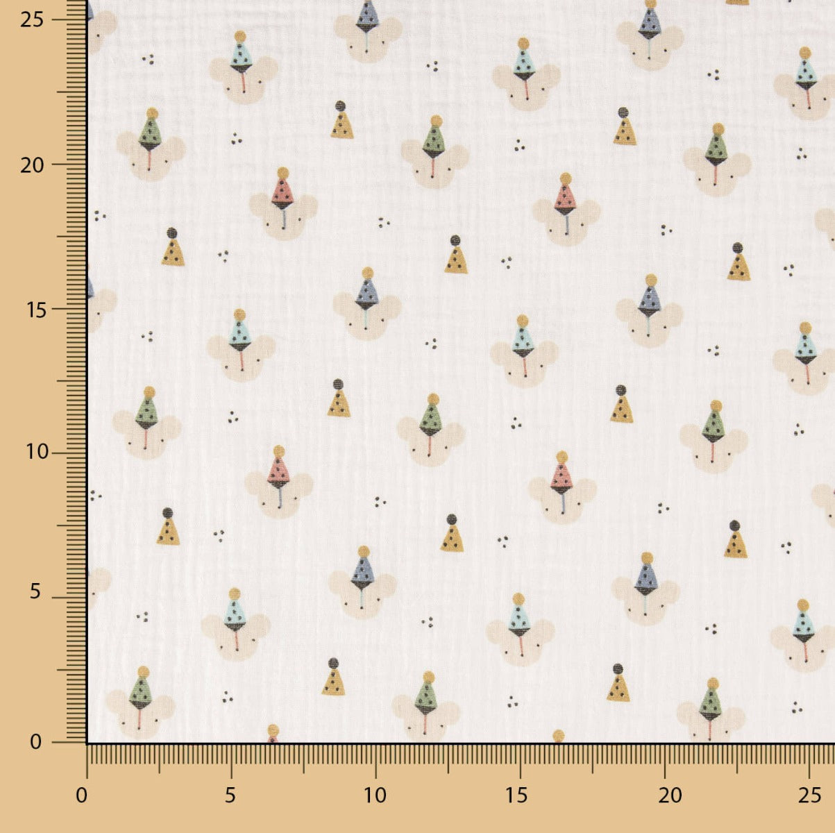 Bambula en coton bio avec tissu enfants imprimé avec visage d'ours et chapeau sur une base blanche. La bambula ou double gaze de coton est un tissu frais et fluide, caractérisé par les plis qui forment la structure et le corps du tissu, c'est un tissu fin et opaque, il ne nécessite donc aucun type de doublure. Si vous recherchez un tissu de qualité pour des robes, des jupes, des pantalons ou des chemises d'été, le coton bambula répondra certainement à ces exigences.