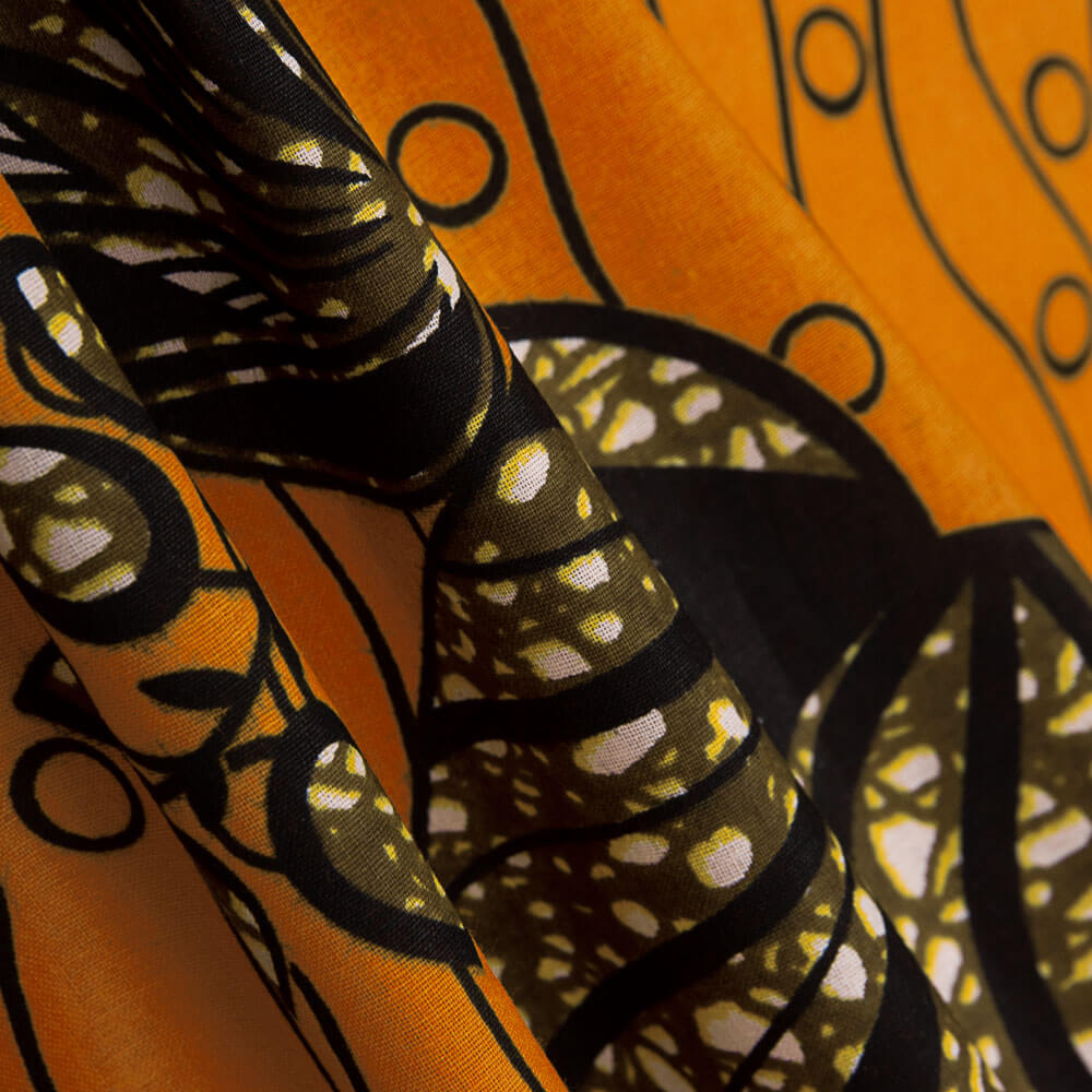 Tissu WAX modèle Hapana aux couleurs intenses parfait pour la confection de vêtements uniques et colorés. Le tissu africain Wax est un tissu en coton, caractérisé par l'apprêt wax qui donne un léger éclat et de la douceur au tissu, soutenu, fin et fin. Ce tissu africain est parfait pour coudre des robes africaines, des sacs, des porte-monnaie et toutes sortes d'accessoires de mode et de décoration intérieure.