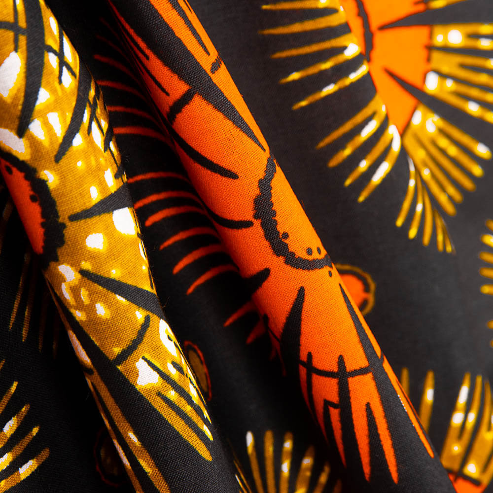 Le tissu WAX modèle Kambi aux couleurs intenses parfait pour la confection de vêtements uniques et colorés. Le tissu africain Wax est un tissu en coton, caractérisé par l'apprêt wax qui donne une légère brillance et plus de douceur au tissu, soutenu, fin et fin. Ce tissu africain est parfait pour coudre des robes africaines, des sacs, des porte-monnaie et toutes sortes d'accessoires de mode et de décoration intérieure.