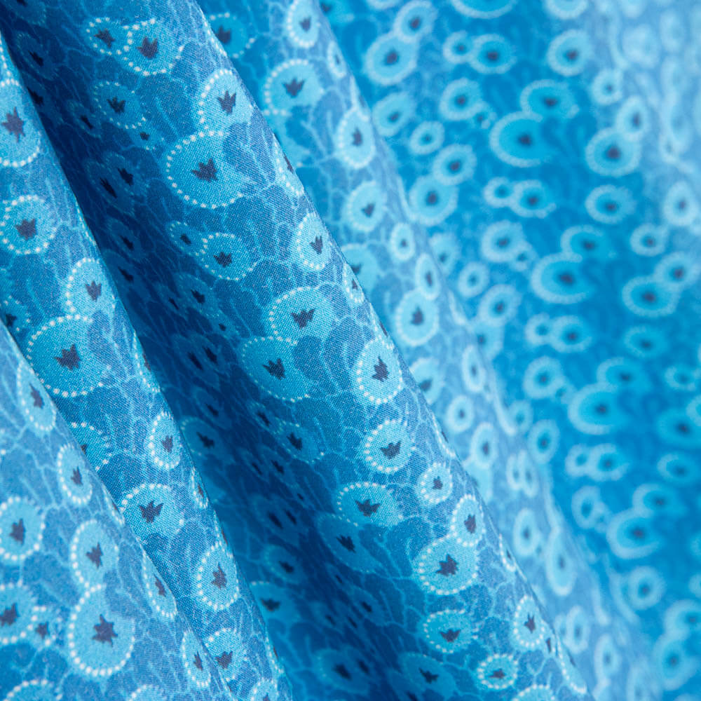Popeline imprimée en coton Supima de la plus haute qualité dans une collection exclusive de Ribes & Casals. Tissu imprimé avec motif géométrique aux formes arrondies dans les tons bleus. Tissu imprimé en coton Supima de haute qualité, c'est un tissu avec des brins de coton fins de 5cm de long, atteignant une résistance et une flexibilité de premier ordre. Il s'agit d'un coton 100 % naturel de qualité supérieure, d'une grande résistance et d'une excellente douceur, qui prendra soin des peaux les plus délicates. Ajoutez une touche d'élégance et de distinction à votre vêtement avec des imprimés à la mode pour vos projets de couture. Spécialement conçu pour la couture de chemises, de tissus pour enfants, de compléments et de toutes sortes de décorations. Nous vous conseillons d'utiliser un savon neutre pour les vêtements délicats et d'utiliser un cycle doux dans la machine à laver pour garantir une plus grande durabilité.
