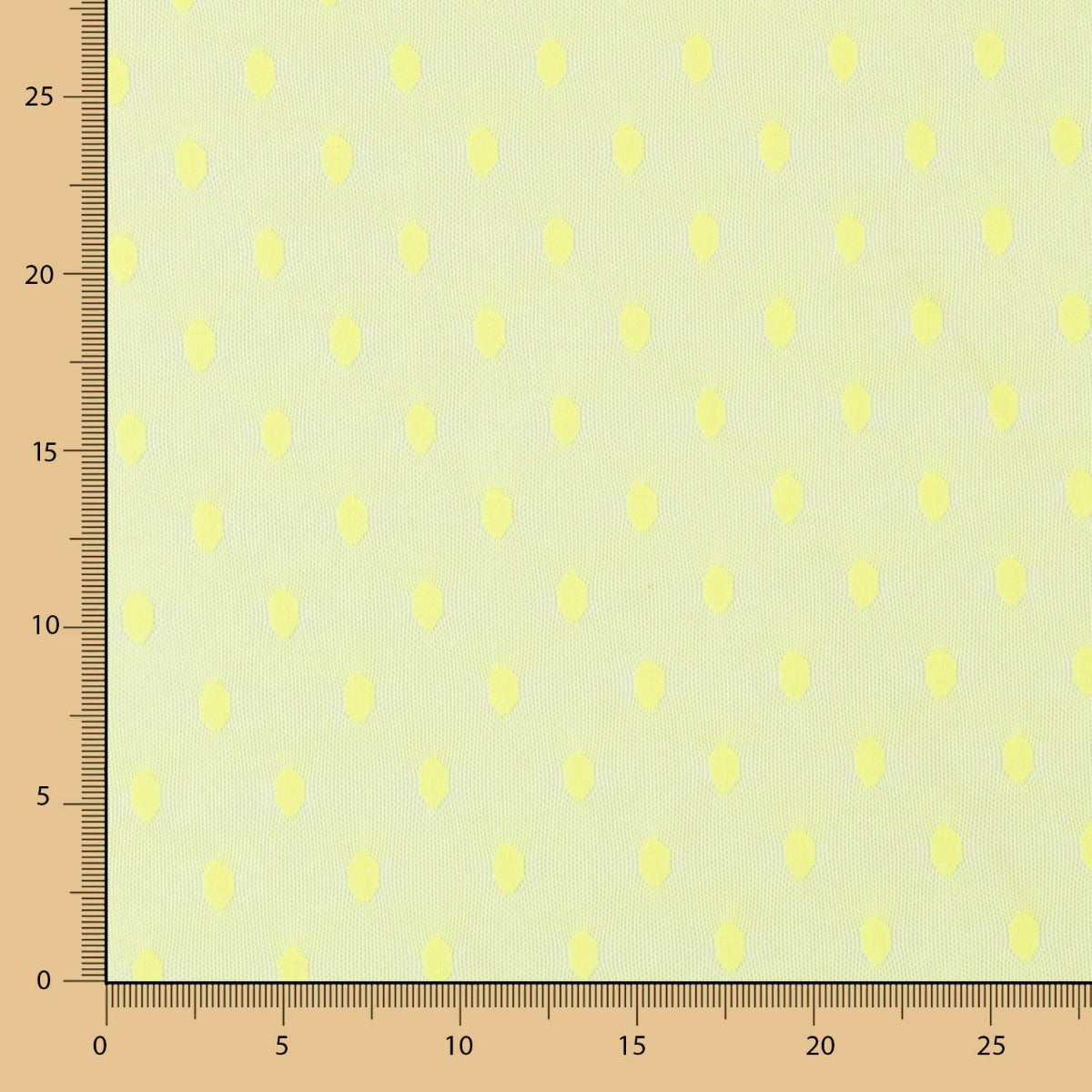 Tissu élastique en tulle plumeti de couleur jaune. Tulle élastique translucide, avec peu de corps, beaucoup de tombé et légère. Le tulle est un tissu élastique idéal pour les applications sur costumes de flamenco et tous types de travaux manuels.