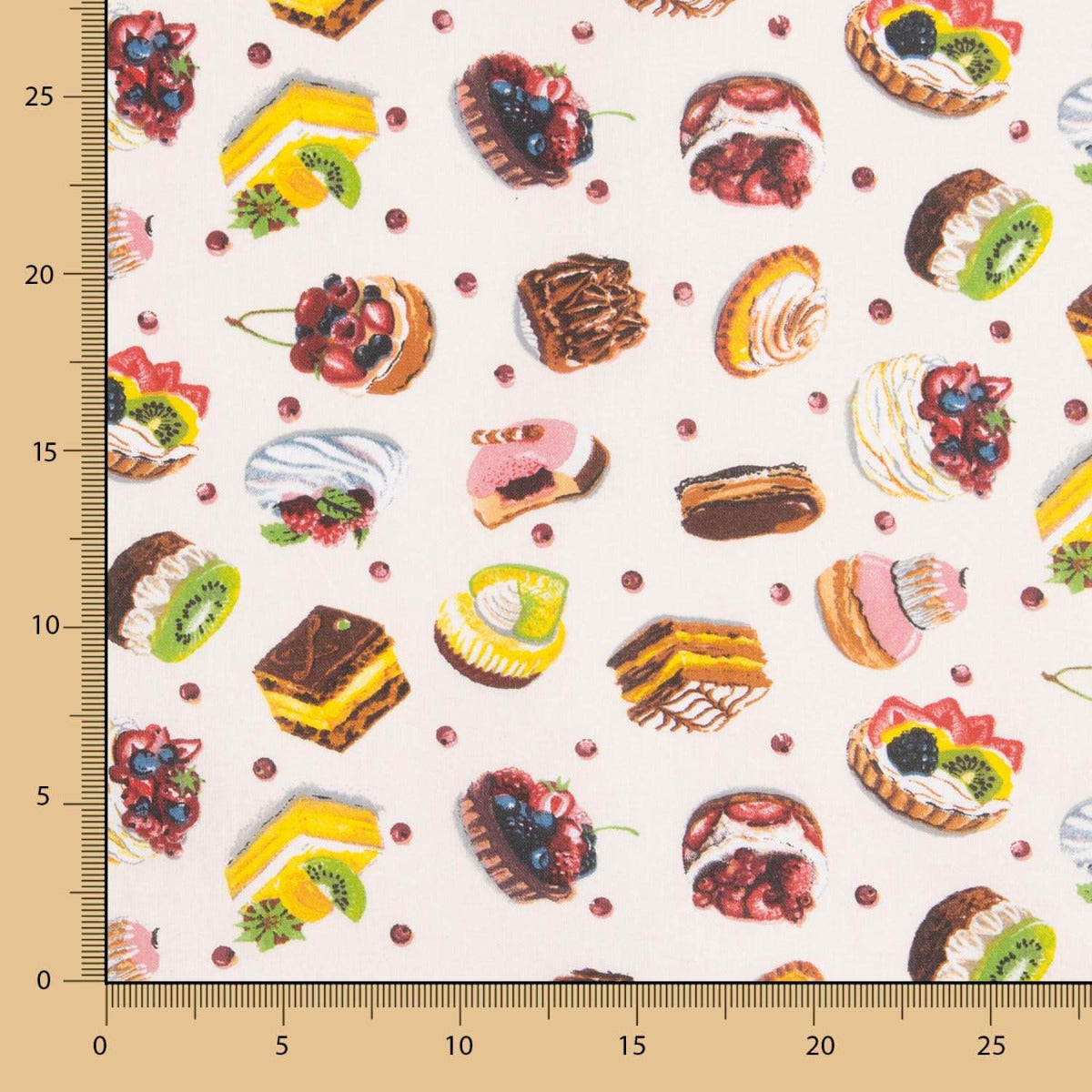 Tissu popeline en résine avec imprimé Tartlets. Tissu popeline 100% coton avec finition Teflon, déperlant au premier contact sans être imperméable. Fin et doux au toucher, avec le toucher ciré caractéristique de la finition Téflon. C'est un tissu fin parfait pour la couture d'accessoires, le patchwork, les chemises et les tissus pour enfants.