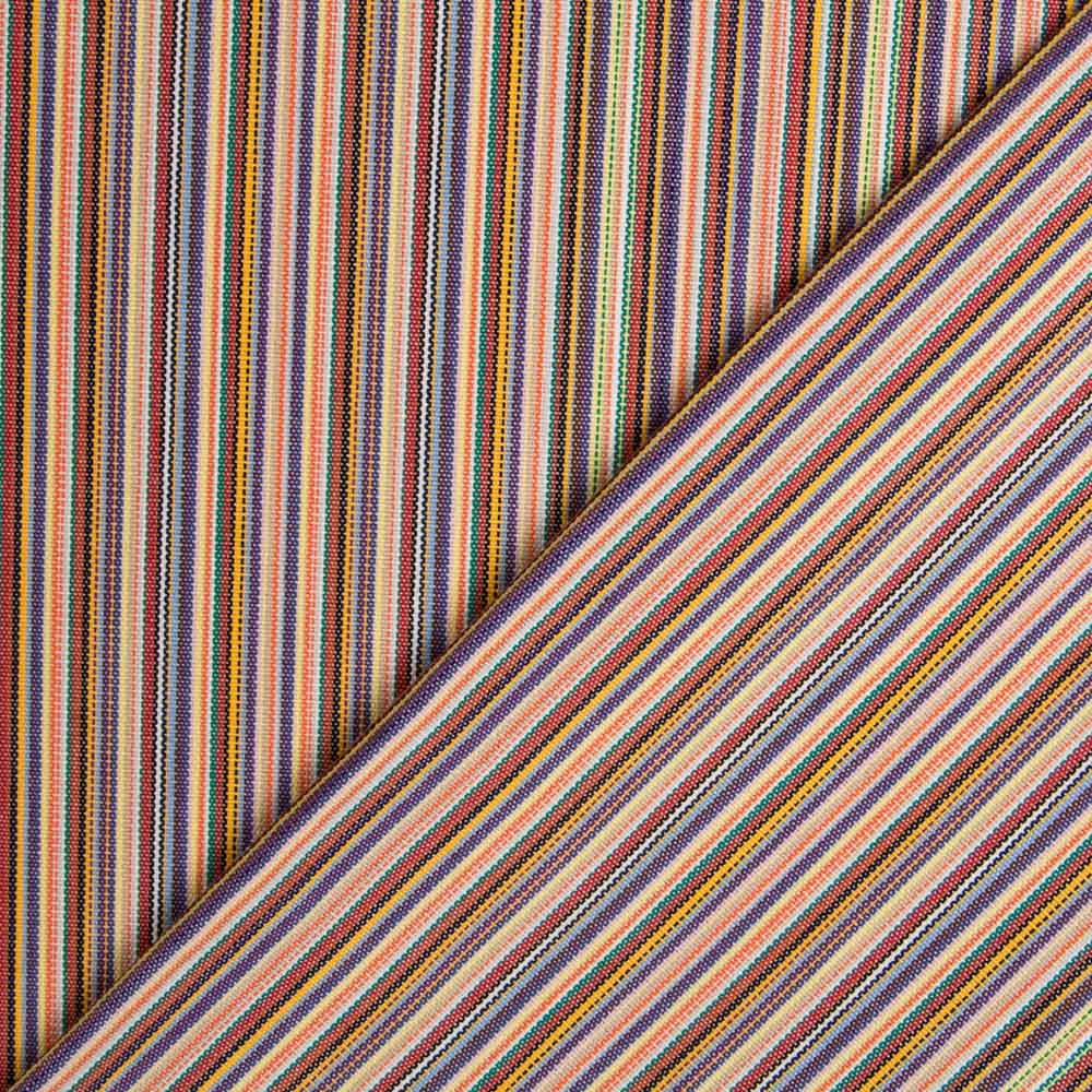 Toile d'aspect rustique rayé en marron, avec finition en téflon. Extérieur et déperlant. Il est caractérisé par être une isolation solaire parfaite, solide, résistante et rigide. Tissu extérieur pour décorer les terrasses, les sièges extérieurs, les auvents, faire des coussins, etc. Tissu d'épaisseur moyenne pour la couture avec aiguilles de 90, dans une machine traditionnelle. Il est recommandé de le coudre avec du fil de polyester.