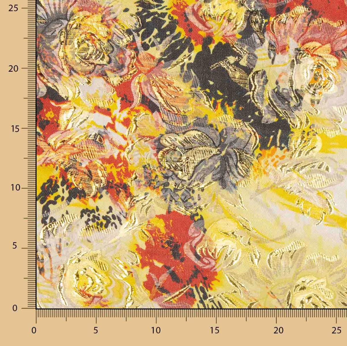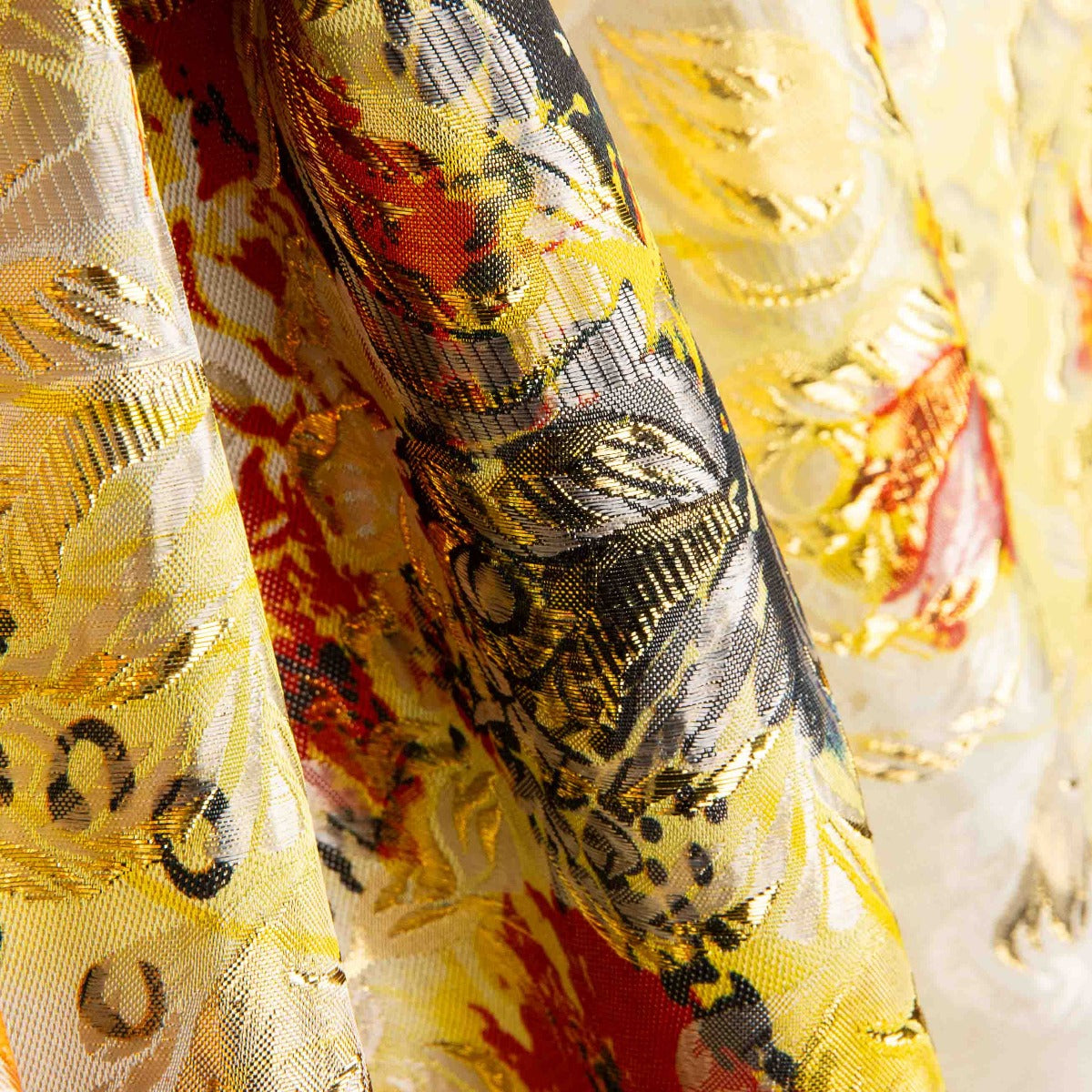 Tissu de satin modèle Ginas de fils métalliques. Tissu de satin tissé avec des fils métalliques et colorés, donnant un éclat très caractéristique au tissu. Tissu brillant, soutenu et fin, parfait pour les vêtements de mode, les robes de spectacles, les tissus pour les costumes de carnaval. C'est également un tissu idéal pour coudre des sacs à main, des étuis, des sacs et toutes sortes d'articles de maroquinerie.