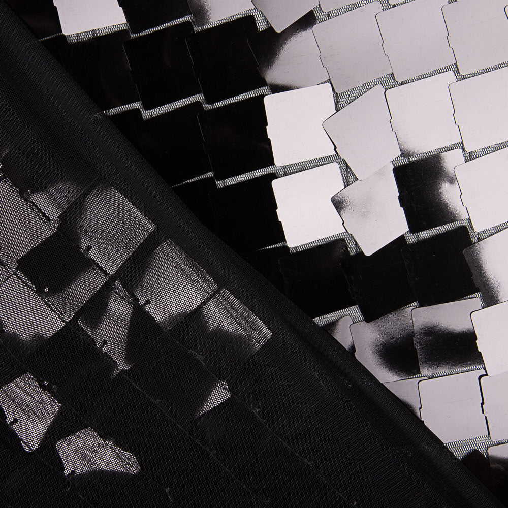 Tissu à paillettes avec des feuilles carrées de 25 mm de côté de couleur lilas avec une base en tulle de la même couleur. Tissu à paillettes sur une base en tulle avec des couleurs vives et brillantes. Sentez-vous la reine de la piste et éblouissez avec cette fantaisie de paillettes émettant des éclats métalliques. Tissu avec du poids et du drapé pour des décorations, des costumes ou des tenues de fête.