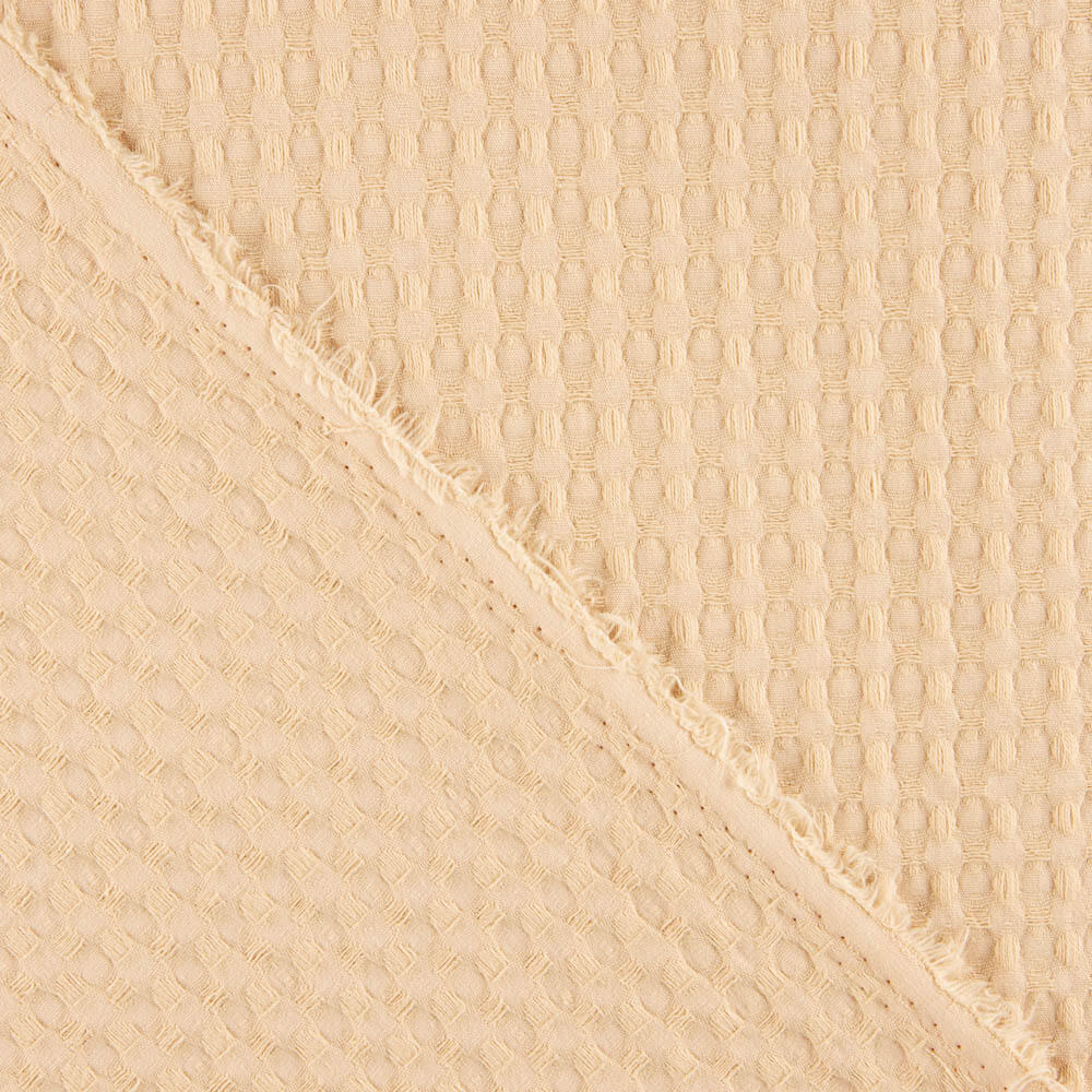 Tissu piqué Waflle à gros carreaux pour serviettes rose nude. Tissu également connu sous le nom de serviette piquée, en raison des carrés en relief qui composent le tissu. Il a le corps et le poids parfaits pour les couvre-lits d'été, les couvertures de bébé et les accessoires de bébé. Parfait pour coudre des peignoirs. Tissu très doux grâce à sa composition en coton, il peut être utilisé comme sac de landau et couette d'été.
