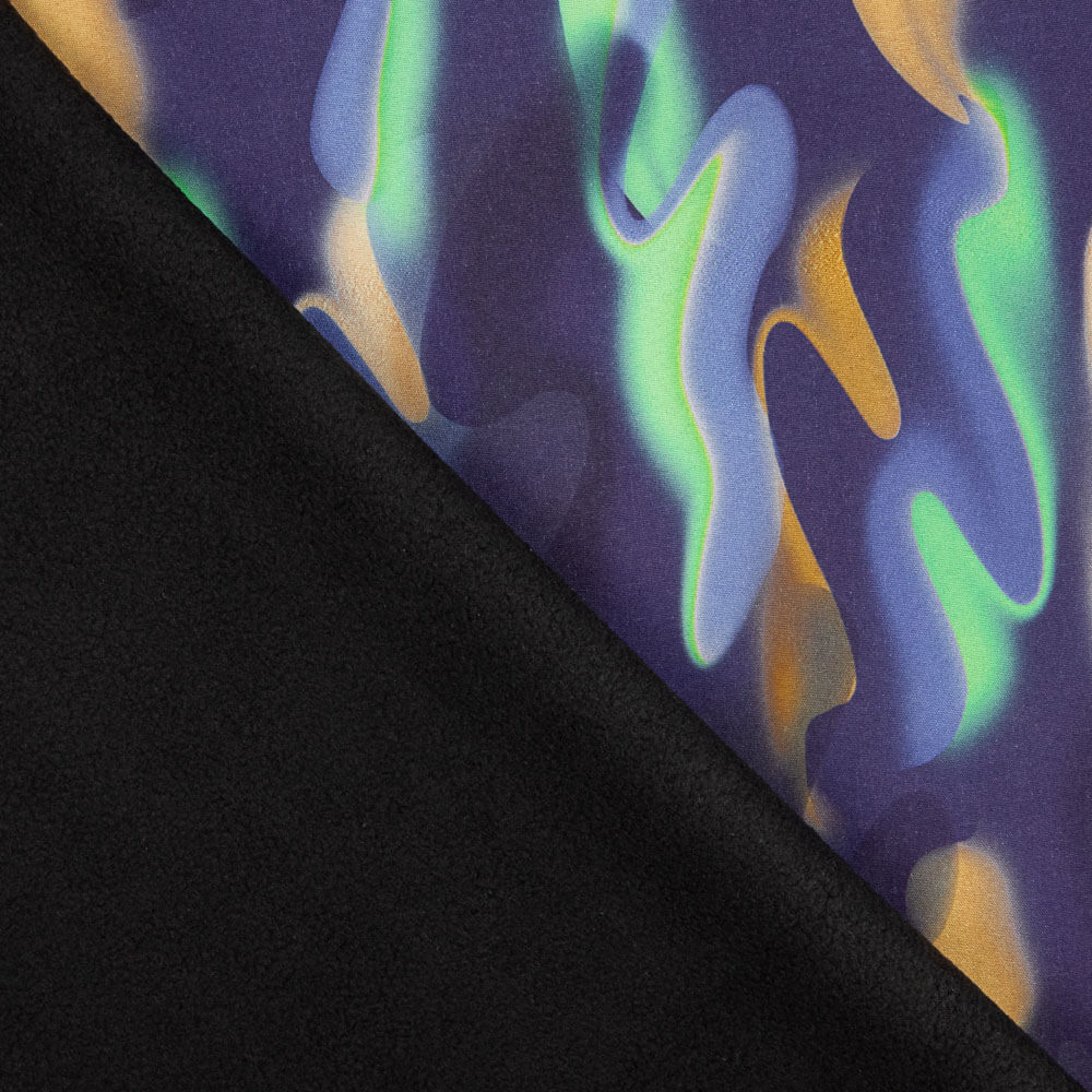 Tissu imprimé Softshell dans les tons marine. Le Softshell est un tissu technique à deux faces. Tissu opaque, soutenu et avec du corps. La face extérieure est lisse avec une finition spéciale qui repousse l'eau et la face intérieure est légèrement duveteuse, semblable à la polaire. Il s'agit d'un tissu "technique" caractérisé par sa capacité à apporter de la chaleur aux vêtements, en les isolant du froid et de l'humidité. Le Softshell est utilisé pour les vestes et les vêtements de sport de plein air, qui font office de mackintosh et de coupe-vent. Tissu confortable et agréable à porter, qui s'adapte parfaitement aux mouvements.