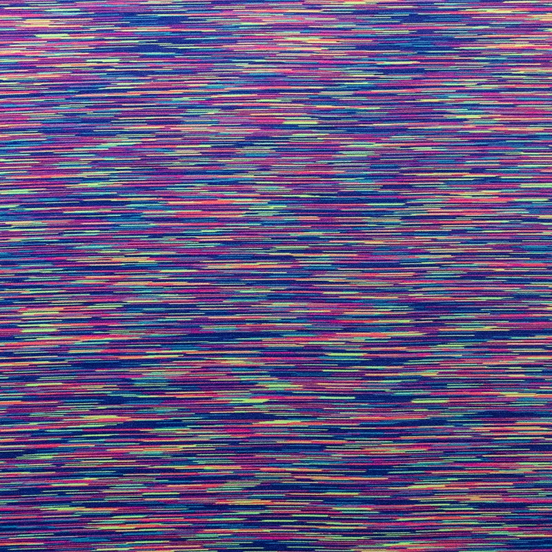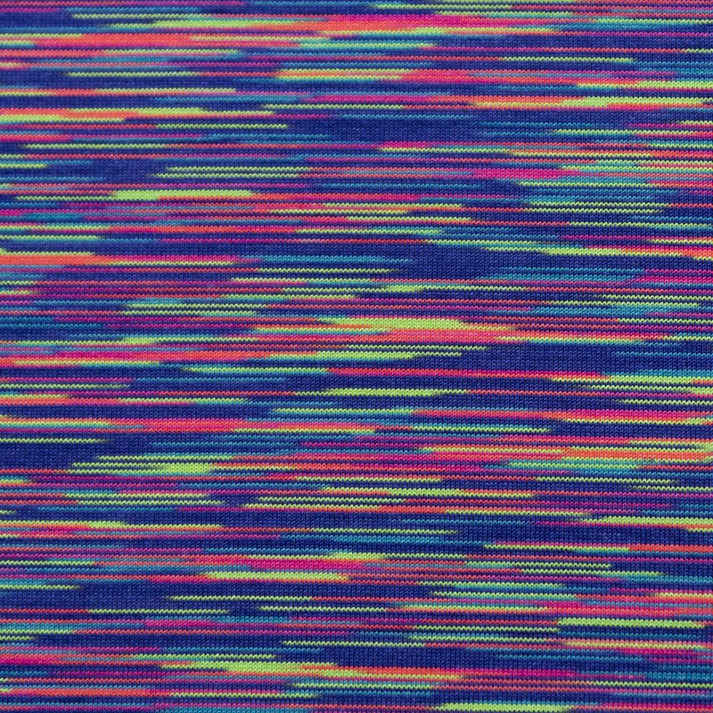 Tissu pour leggings à rayures multicolores. Tissu en maille épaisse, avec tombé, très élastique et résistant au coup. C'est un tissu élastique pour vêtements de sport comme les leggings et les brassières. Tissu idéal pour vos tenues de sport, footing et gymnastique car il s'adapte aux mouvements du corps et s'étire dans les deux sens.