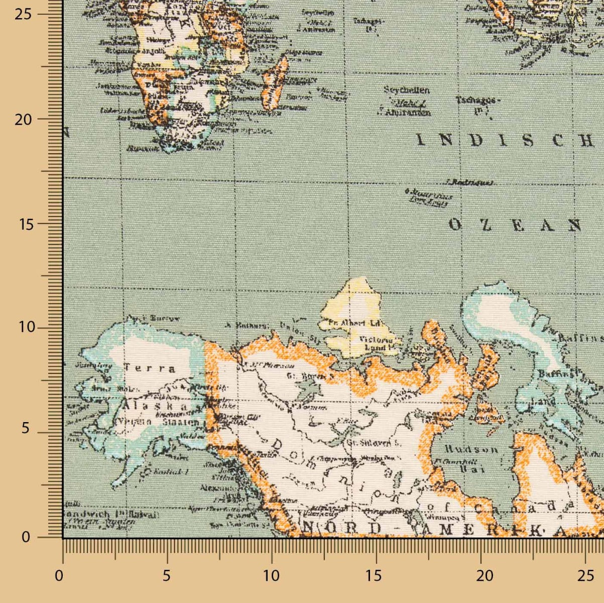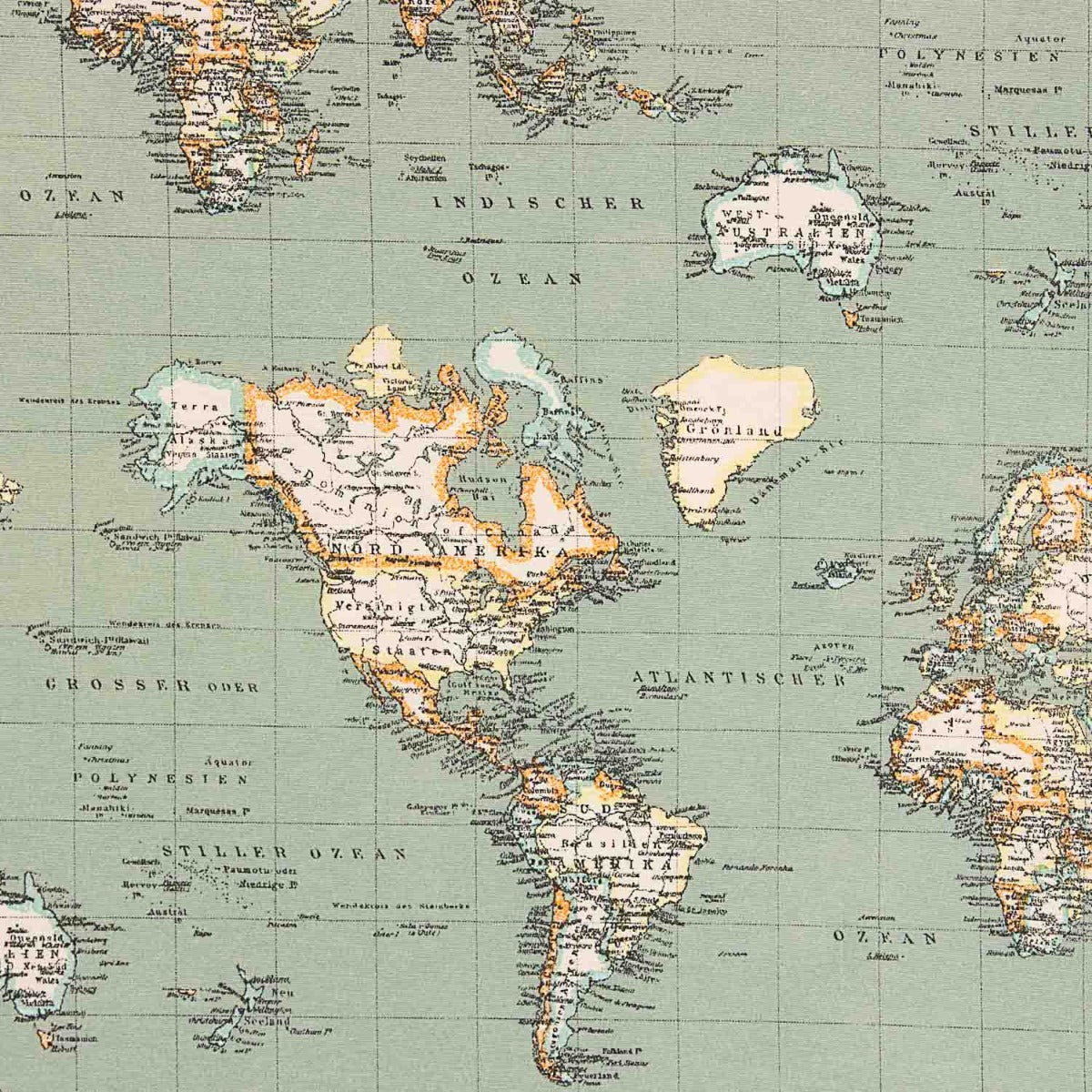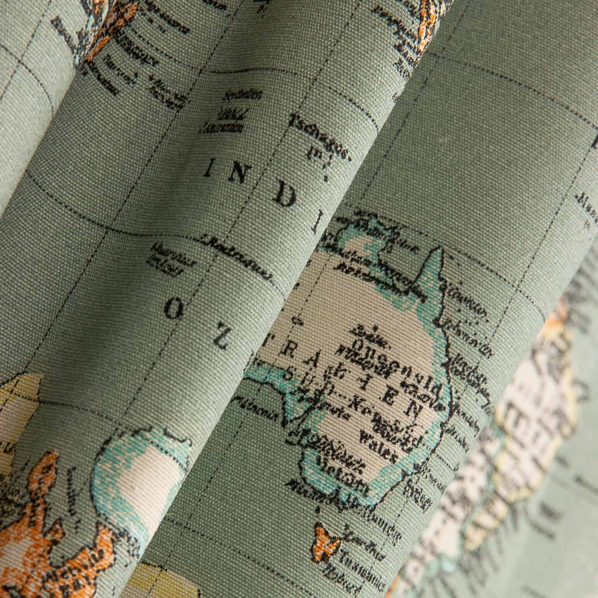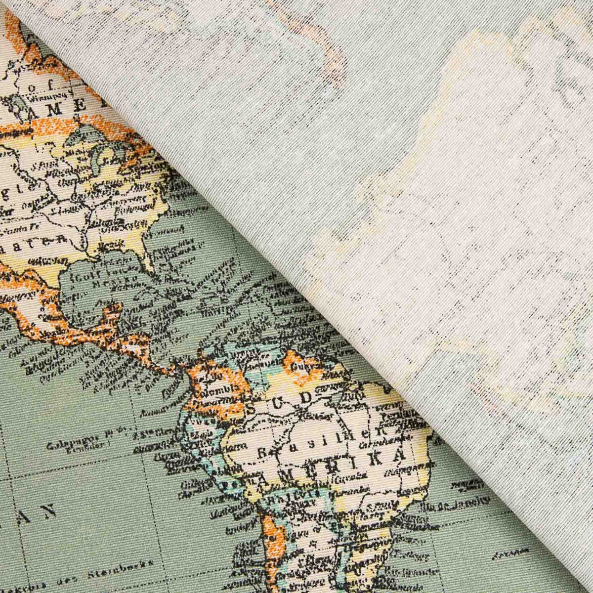 Toile imprimée avec une carte du monde colorée sur fond bleu. Toile avec mappe monde imprimée sur un tissu opaque, avec corps et très resistant. Idéal pour la confection de sacs, coussins et tous types de tapisseries.