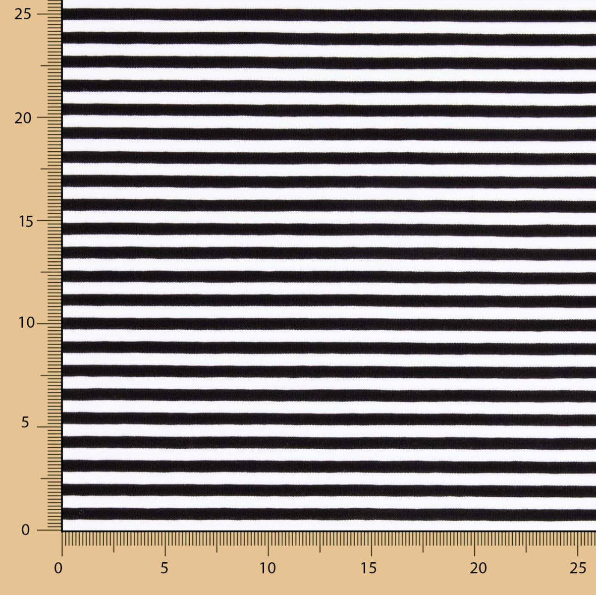 Le tricot à imprimé rayé bicolore noir et blanc, avec une largeur de rayure de 0,5 centimètre et une composition de 95 % de coton et 5 % d'élasthanne, offre une combinaison parfaite de confort et d'élastique. La texture douce du coton procure une sensation agréable sur la peau, tandis que l'ajout d'élasthanne apporte de la souplesse et un ajustement parfait. Les imprimés rayés bicolores ajoutent une touche de style moderne et de polyvalence à tout vêtement confectionné dans ce tissu. Parfait pour coudre des vêtements décontractés et sportifs qui exigent confort et fraîcheur.