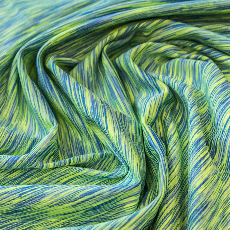 Tissu pour leggings à rayures jaune fluo. Tissu en maille épaisse, avec tombé, très élastique et résistant au coup. C'est un tissu élastique pour vêtements de sport comme les leggings et les brassières. Tissu idéal pour vos tenues de sport, footing et gymnastique car il s'adapte aux mouvements du corps et s'étire dans les deux sens.