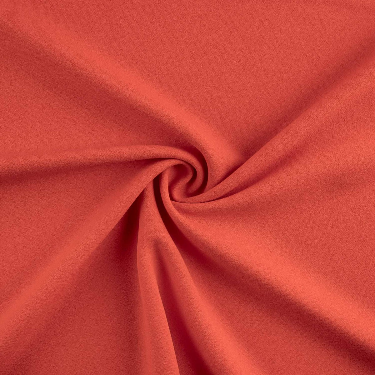 Tissu en maille crêpe de couleur corail avec du corps et du drapé, connu sous le nom de Néoprène ou Scuba. Le néoprène est un tissu tricoté à petit grain très similaire au crêpe. Il se caractérise par un drapé important et donne un certain volume aux vêtements cousus. Il est parfait pour coudre des robes moulantes, des jupes, des vestes et d'autres vêtements à la mode.