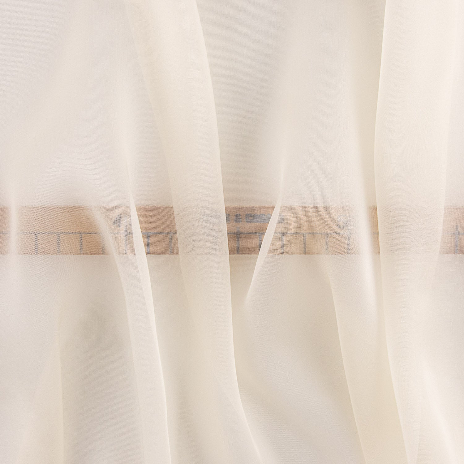 Gaze de soie naturelle de couleur beige. Tissu de soie translucide, vaporeux, très doux et très agréable au toucher. La gaze est un complément indispensable à la confection de robes de soirée, car elle accentue le contraste des couleurs et apporte transparence et élégance aux vêtements. Idéale pour la confection de châles, foulards et chemisiers.