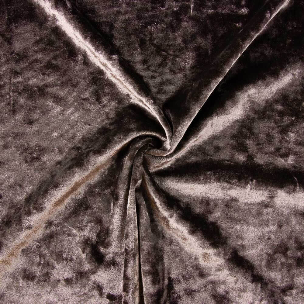 Tissu velours marron. Le velours style "martelé" est un tissu fin avec beaucoup de drapé, avec une texture très douce et veloutée formant des eaux. C'est le tissu star de la saison avec beaucoup d'élastique pour les vêtements qui nécessitent une coupe près du corps. Le velours permet de réaliser des robes de soirée moulantes, des jupes et même des pantalons.