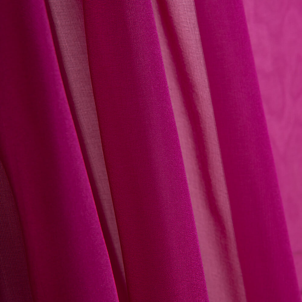 Tissu en mousseline de soie 100% naturelle de couleur aubergine. Tissu de soie translucide, vaporeux et d'une texture très douce et agréable. La mousseline de soie est un complément de base pour la couture de robes de soirée, rehaussant le contraste des couleurs et apportant transparence et élégance aux vêtements. Parfaite pour coudre des châles, des écharpes et des chemisiers.
