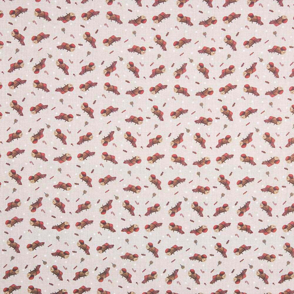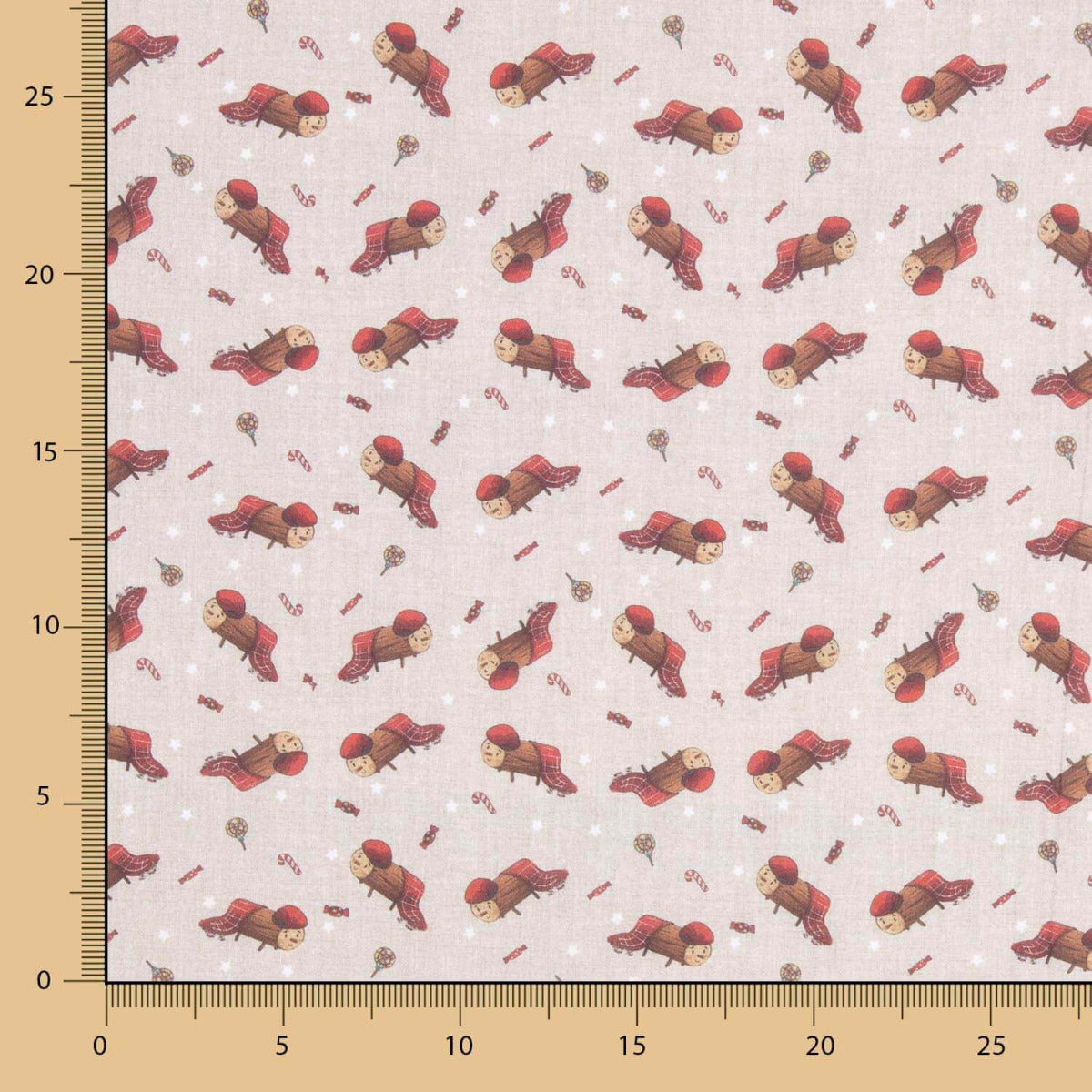 Tissu de décoration et de patchwork de Noël, modèle "cagatió". Tissu en popeline de coton avec un imprimé soutenu, avec peu de corps et fin, parfait pour les décorations, les nappes à coudre et tout type de décoration intérieure et de patchwork.
