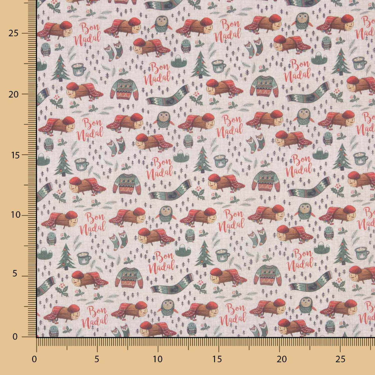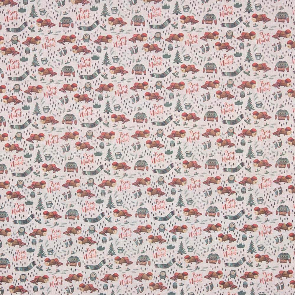 Tissu de décoration et patchwork de Noël modèle bon nadal. Tissu en popeline de coton avec un imprimé soutenu, avec peu de corps et fin, parfait pour les décorations, les nappes à coudre et tout type de décoration intérieure et de patchwork.