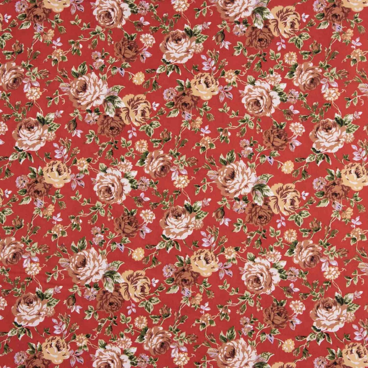 Ce tissu popeline 100 % coton, d'une largeur de 150 cm, se distingue par son fond rouge vif décoré d'un imprimé romantique de grandes roses dans des tons rose pâle, terre cuite et crème, rehaussé de délicates feuilles vertes. Tissu plein de caractère et d'élégance, il est idéal pour les robes, les jupes, les chemises, les vêtements pour enfants ou même les accessoires décoratifs au charme vintage. Doux, respirant et facile à coudre, c'est un choix polyvalent pour des créations couture au style distinctif.
