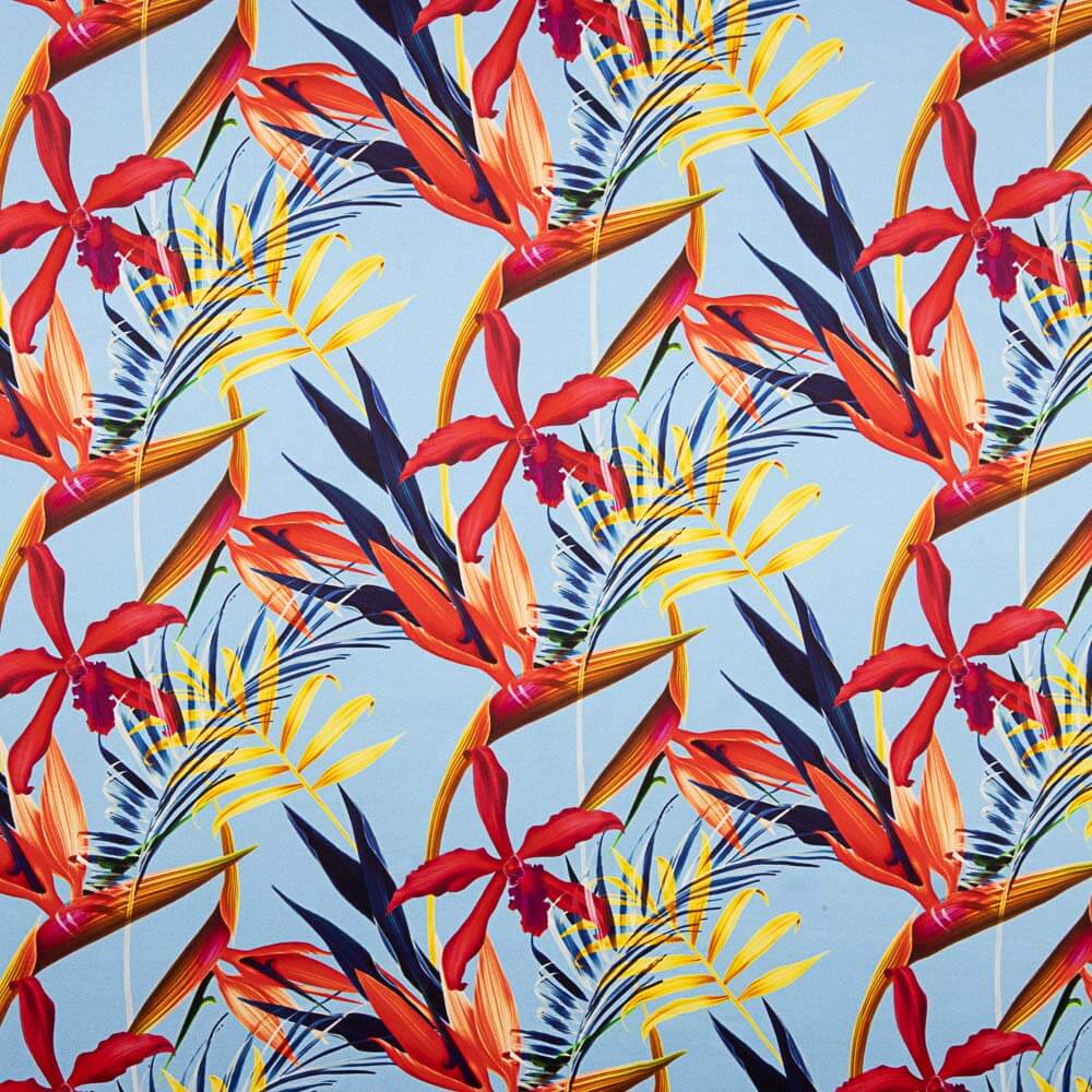 Soie italienne à imprimé floral bleu denim, le tissu le plus exclusif dans le monde de la mode. Tissu à la texture soyeuse, particulièrement doux et agréable au toucher, avec un drapé très caractéristique et élégant. Achetez du satin de soie 100% naturel pour coudre des robes, des jupes, des chemisiers, des kimonos et toutes sortes de vêtements à la mode dans un style décontracté ou de cérémonie.
