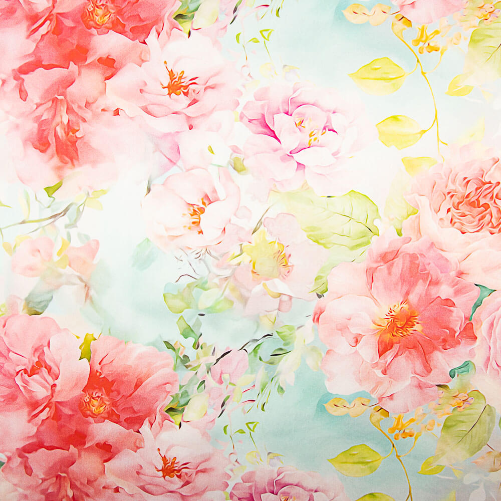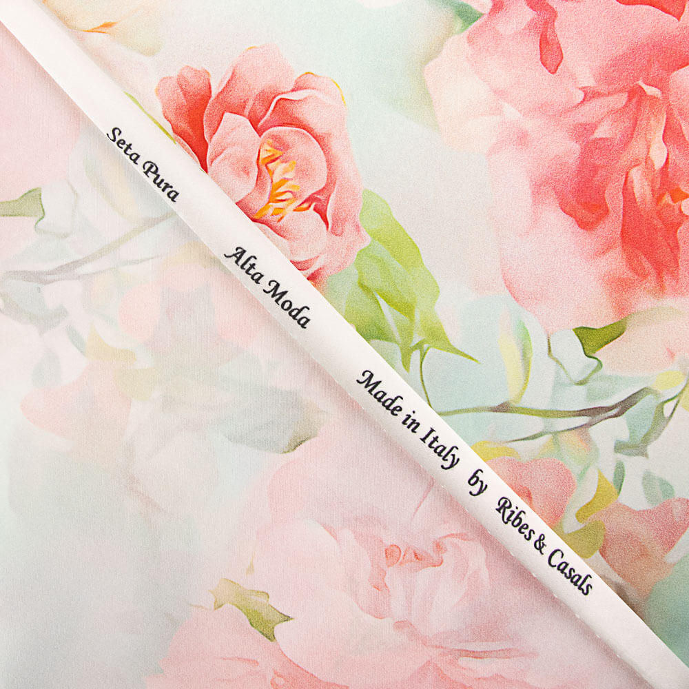 Tissu en satin de soie naturelle à 100 % avec imprimé de grandes roses dans des tons assortis de sarcelle et de rose. Le satin de soie naturelle avec l'imprimé exclusif de Ribes & Casals offre une expérience de couture avec sa combinaison de luxe et d'exclusivité. La soie naturelle apporte une douceur exquise et un lustre somptueux, tandis que le processus d'impression exclusif garantit des motifs uniques et sophistiqués. Ce tissu est parfait pour la couture de vêtements élégants et intemporels, tels que les robes de soirée et les robes de bal, où chaque détail compte.