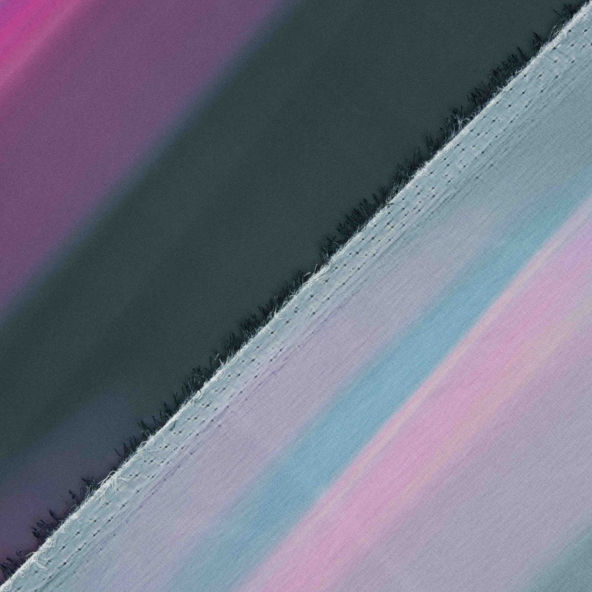 Tissu satiné au toucher soyeux et au drapé fluide, imprimé violet Temuco. Le satin de polyester est un matériau luxueux et élégant qui combine la douceur et la brillance caractéristiques du satin avec la durabilité et le prix abordable du polyester. Ce tissu est créé en tissant des fibres de polyester dans une armure satin, ce qui lui confère une texture lisse et soyeuse.