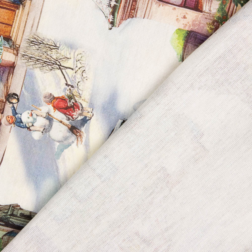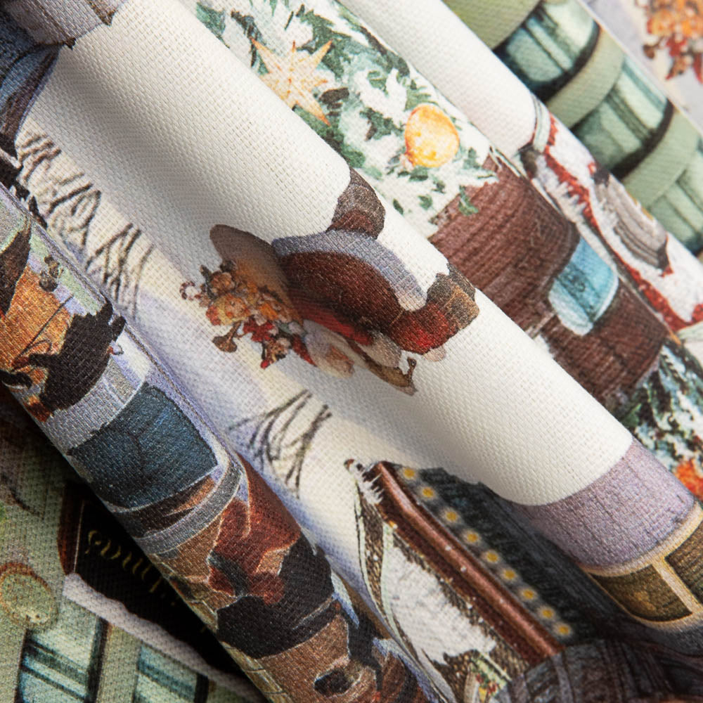 Toile "Half Panama" de qualité avec un imprimé de maisons décoratives en guise de motif de Noël. La toile demi-panama est un tissu solide et durable couramment utilisé dans la fabrication de produits textiles tels que les sacs, les rideaux et le linge de maison. Vous pouvez coudre des rideaux, des nappes et des coussins sur mesure, ainsi que toutes sortes d'accessoires pour la maison. Comme il s'agit d'un tissu 100 % coton, il est recommandé de le laver avant de le manipuler.