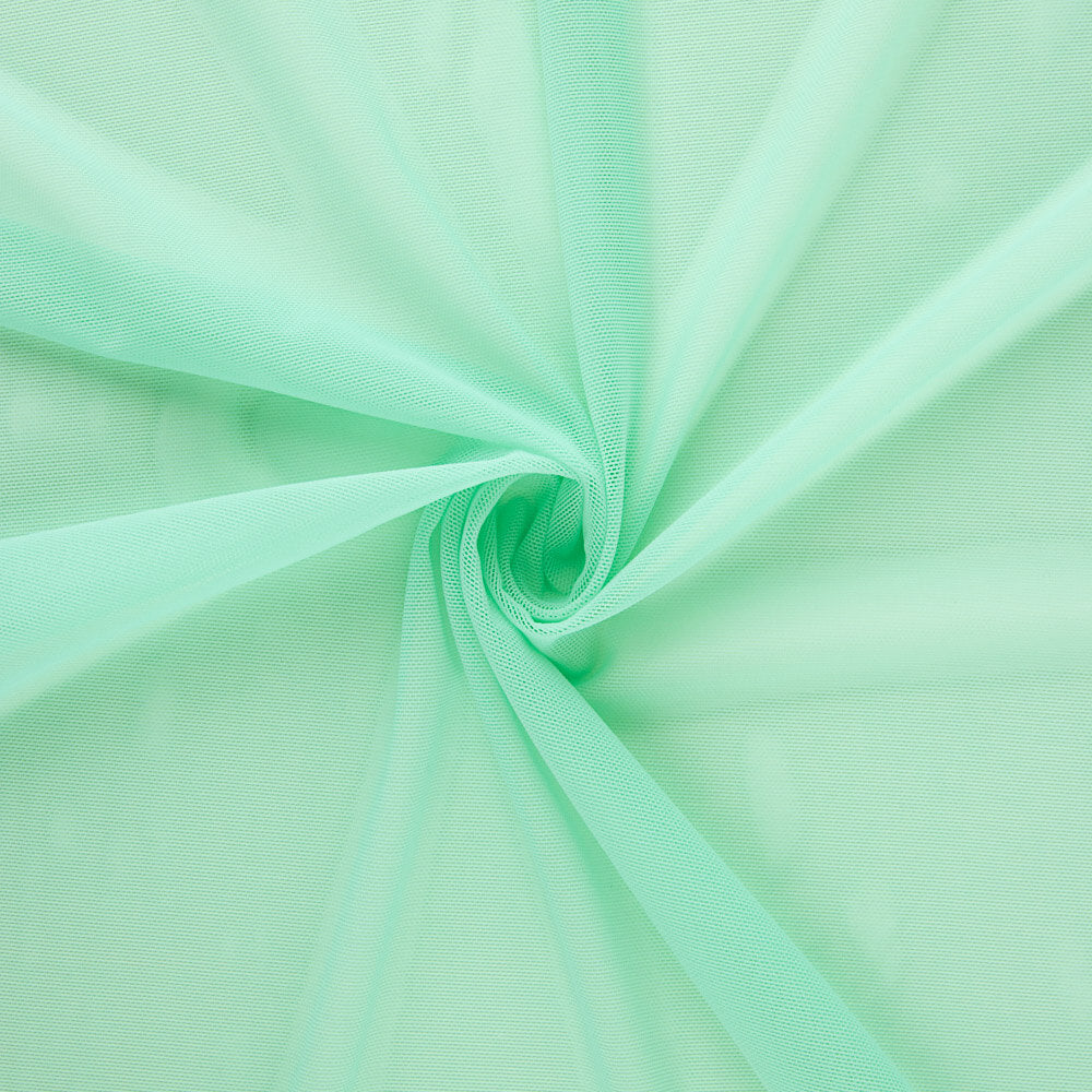 Tela de tul de lycra de color verde suave. Tul elástico translúcido, con poco cuerpo, muy caído y ligero.