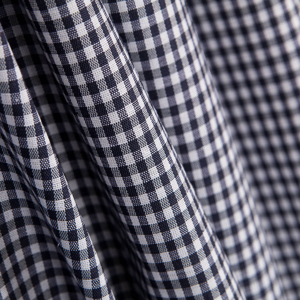 Tissu à carreaux Vichy 3 centimètres en bleu marine. Le  vichy est un tissu fin et souple idéal pour les robes, les sacs à pain et les nappes. Le  vichy est utilisé pour l'artisanat, la décoration et les travaux d'aiguille.