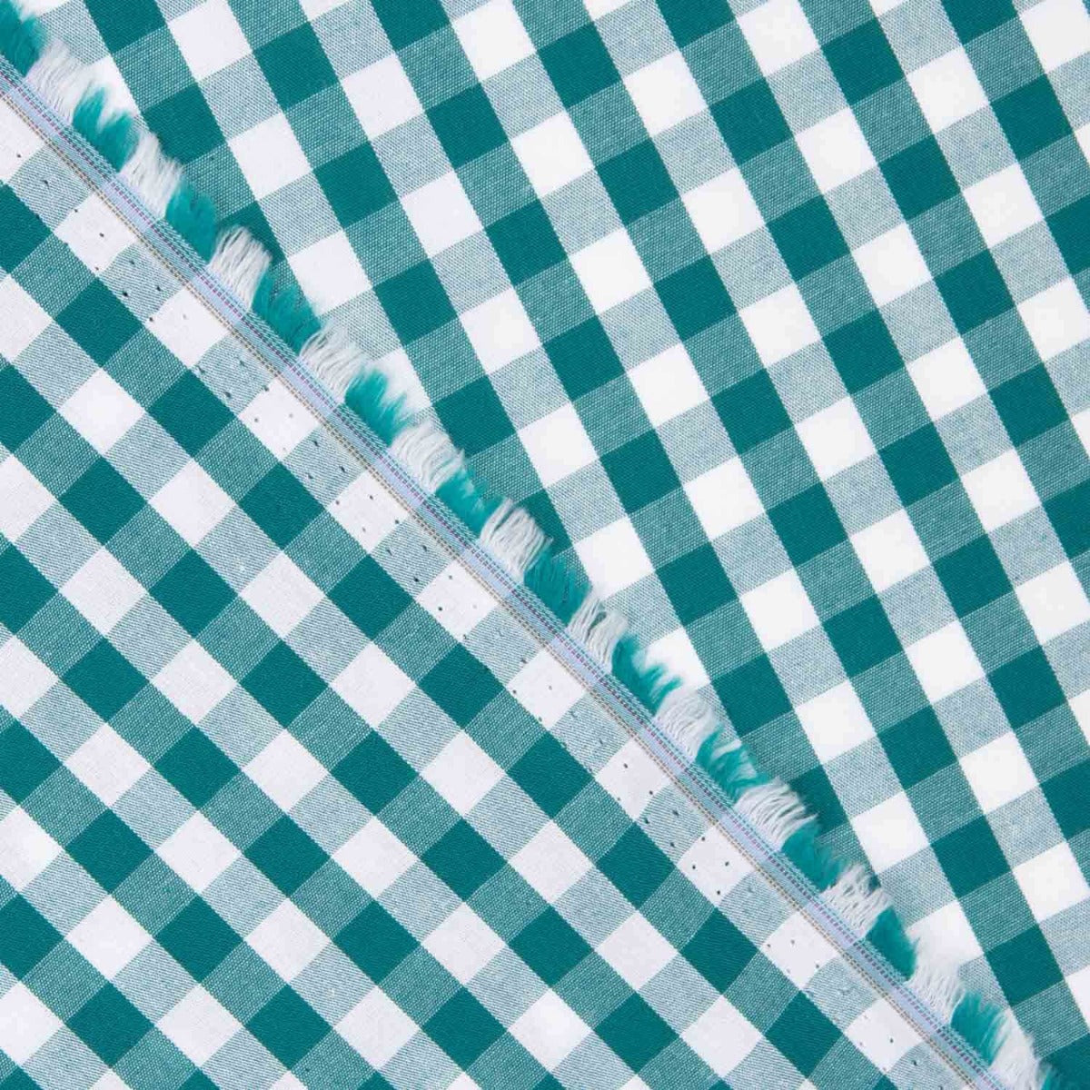 Ce tissu en popeline de coton à carreaux vert canard et blanc est frais, léger et très facile à travailler, idéal pour la confection de vêtements et la décoration. D'une largeur de 145 cm, d'un poids de 100 g/m² et composé à 100 % de coton, ce tissu est doux, avec un tombé léger et juste assez de structure pour offrir une finition nette et précise. Le motif à carreaux de 0,90 cm lui confère un look classique, tandis que la teinte vert canard, élégante et originale, ajoute une touche distinctive. Parfait pour les chemises, les chemisiers, les robes, les jupes, les vêtements pour enfants, les accessoires ou les détails décoratifs tels que les coussins et les nappes. Certifié OEKO-TEX, c'est un choix sûr pour les peaux sensibles et respectueux de l'environnement.