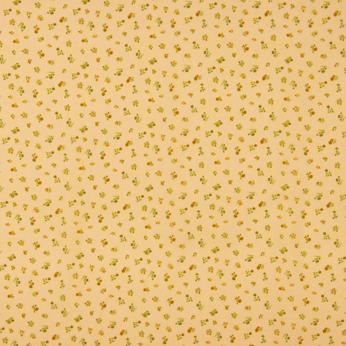 Profitez des derniers mètres de ce charmant tissu 100 % viscose imprimé, parfait pour coudre des vêtements légers et respirants avec une touche délicate et champêtre. Avec une largeur de 140 cm, il est idéal pour les robes romantiques, les tops à bretelles, les jupes évasées ou les chemises amples. L'imprimé floral discret dans des tons moutarde et vert sur fond vanille évoque les champs en fleurs baignés de soleil et apporte fraîcheur et douceur à toutes vos tenues printanières et estivales. Pour un résultat optimal, utilisez des épingles fines, une aiguille microtex et surfilez ou surpiquez les coutures. Repassez à l'envers à température moyenne pour préserver les couleurs et garantir une finition soignée.