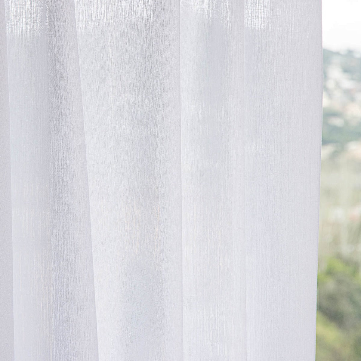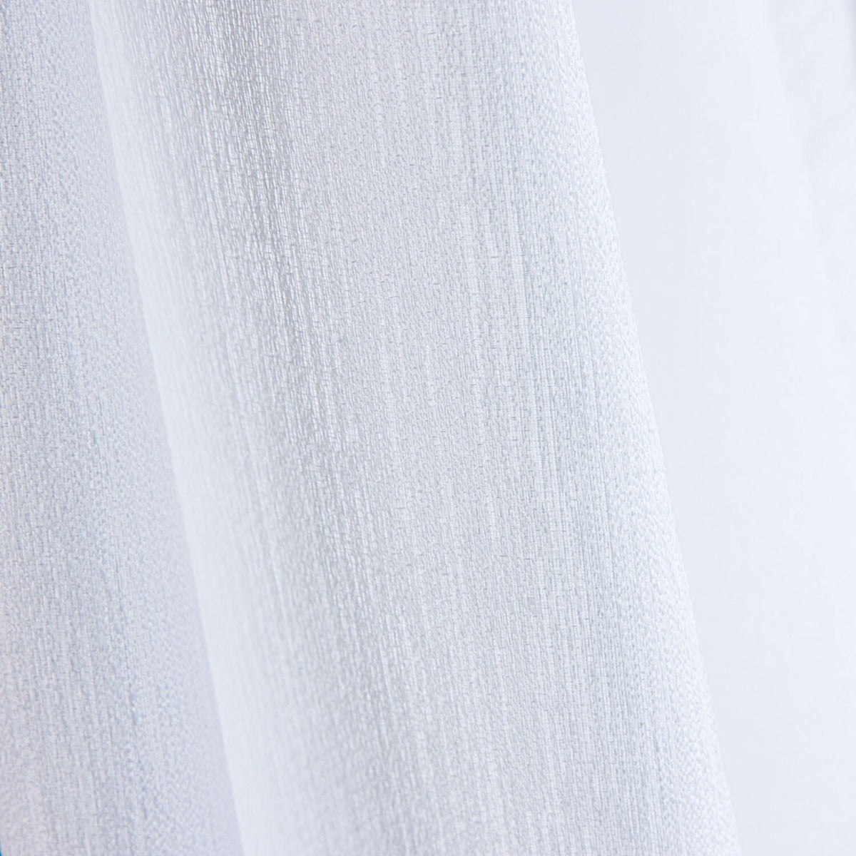 Tela de visillo a metros tipo crep rústico blanco. Tela de poliéster 100% con una caida y un tacto esquisito con una altura de 280cm. Es una tela de visillo translúcida con buena caída para confección de cortinas.