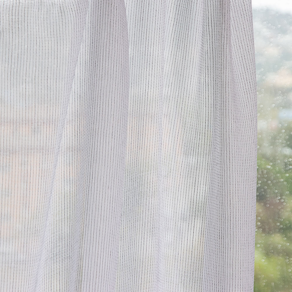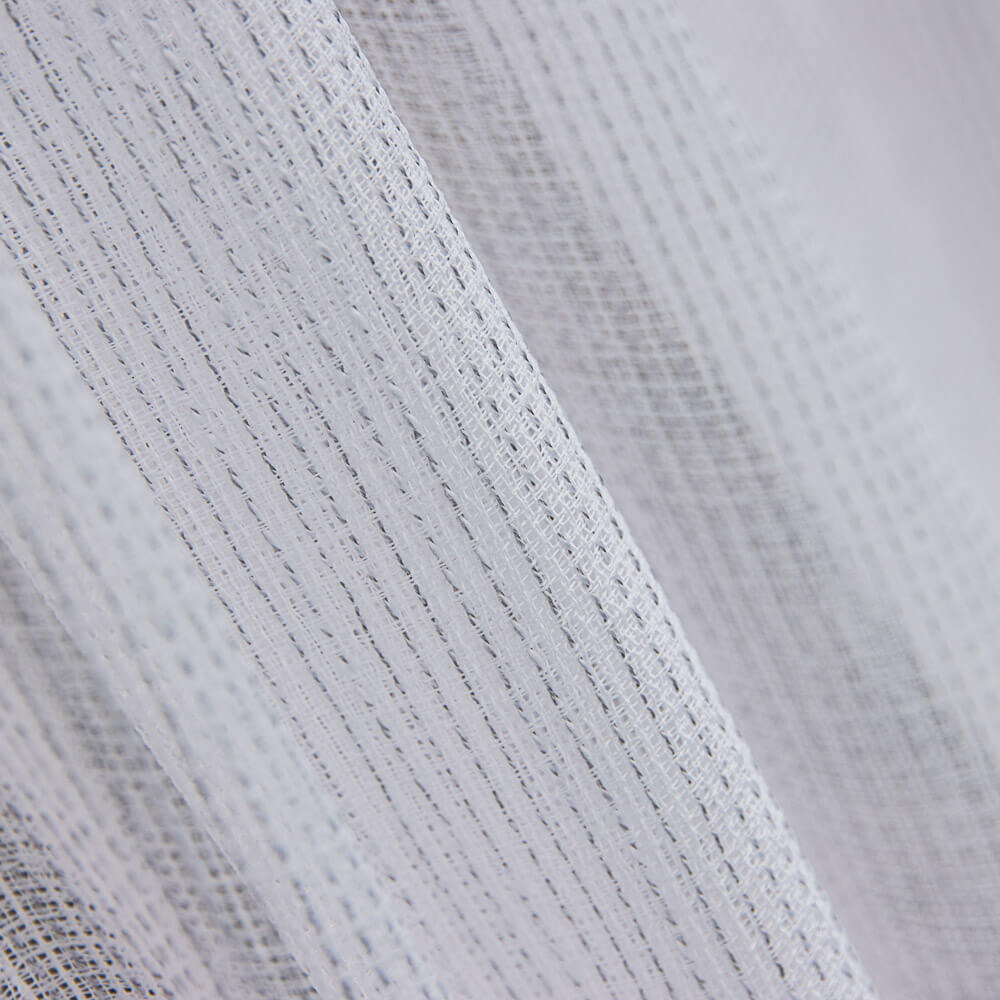 Tela de visillo con trama imitando al panamá de color blanco. Tela visillo con bajo acabado en cinta de plomo de color blanco estilo etamin. Tela de poliéster 100% en un práctico ancho de 280cm. Es una tela de visillo translúcida con buena caída para confección de cortinas. Debido a su composición, es un tejido de muy fácil mantenimiento. No encoje y puedes lavarla a máquina a 30º con un centrifugado suave. Si cuelgas las cortinas húmedas, con el propio peso quedarán perfectas sin necesidad de planchado. Se recomienda no utilizar suavizante. No admite secadora. La tela ya viene acabada en uno de los orillos del ancho con un cordón de plomo, que sirve de peso, listo para utilizar como final del bajo de tus visillos. para decoraciones de Hogar.
